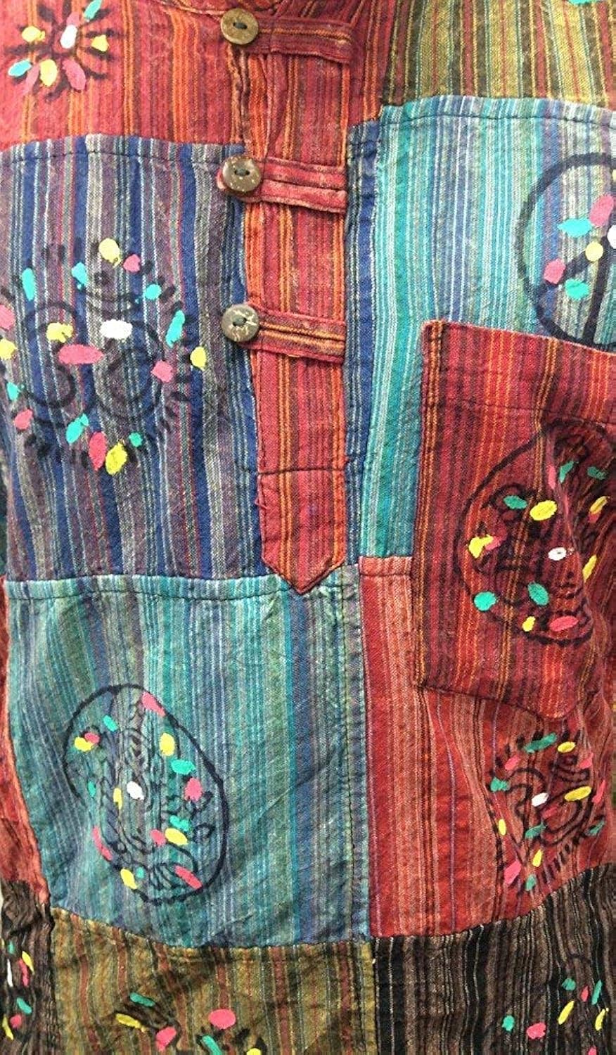 BOHEMIAN PERFECTION: Embrace the artistic charm of our handmade hippy shirts for men featuring patchwork style and grandad shirt elements