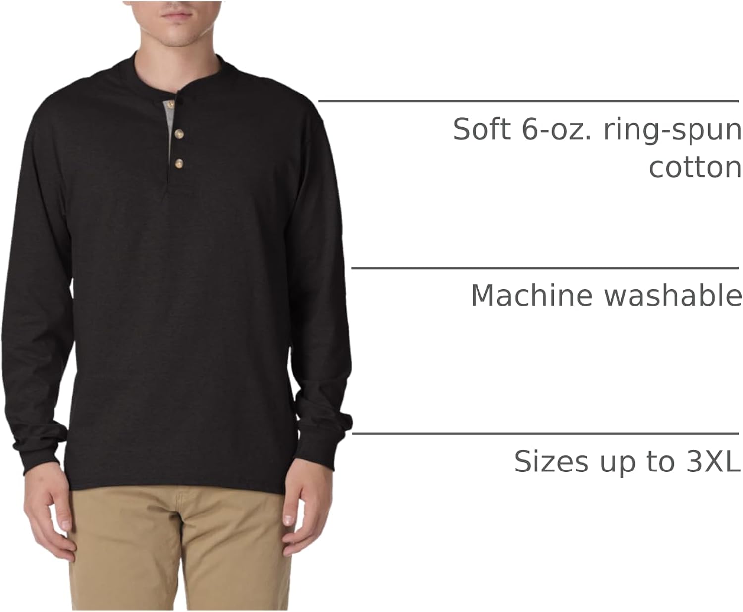 HENLEY STYLE - These Hanes men's cotton t-shirts boast a rounded neckline, three-button placket, and long sleeves.