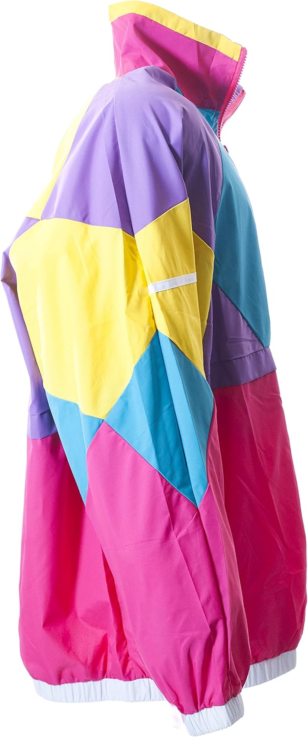 Zip-up Design, Elastic Cuffs, and Convenient Storage: These 80's retro windbreakers have a zip-up front closure, making them easy to put on and take off. Alongside the elasticized cuffs and hems that ensure a snug fit and keep the jacket in place during physical activities, you'll find the added functionality of two zipper pockets. These pockets offer convenient storage, perfect for stashing essentials or keeping your hands warm while you rock that classic 80s look.
