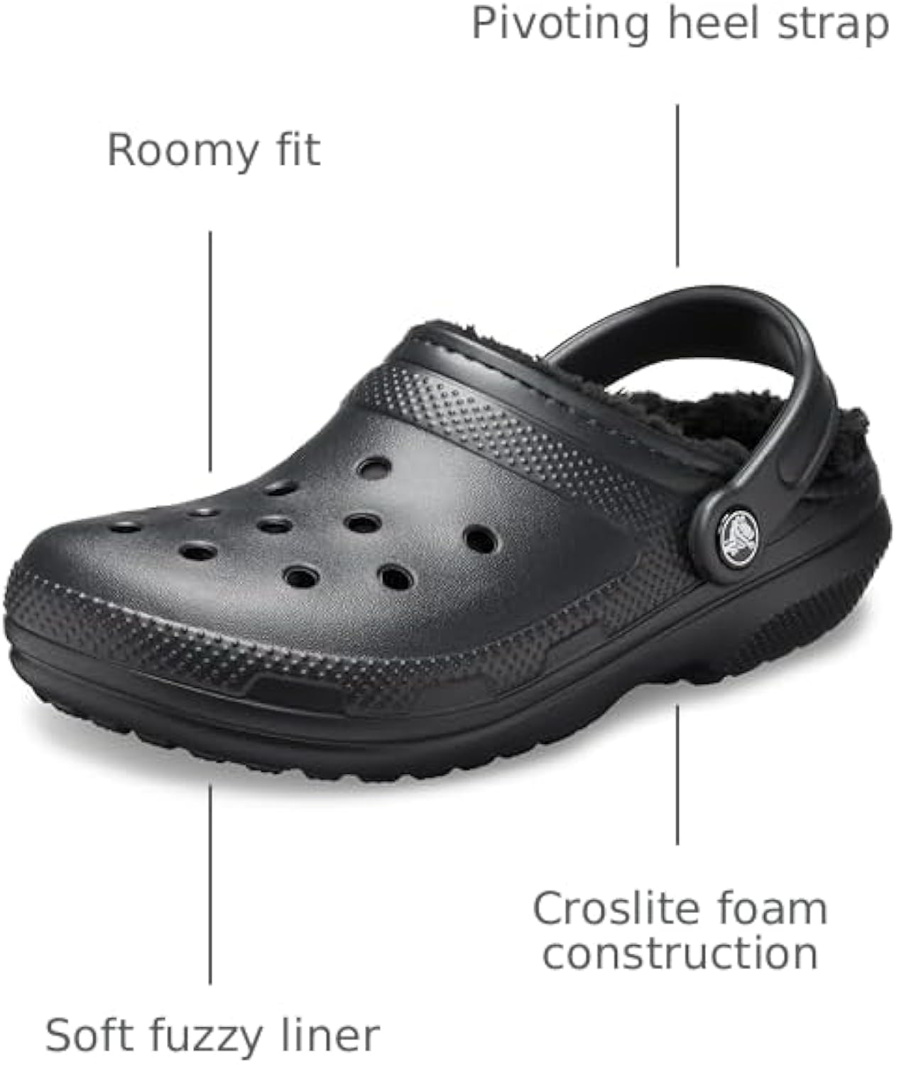 CLASSIC LINED FIT: Cozy clogs with a toasty lined fuzz are the Crocs women and men need to keep the feeling going all season. Traditional heel straps give you a secure, snug fit for step in and go comfort.