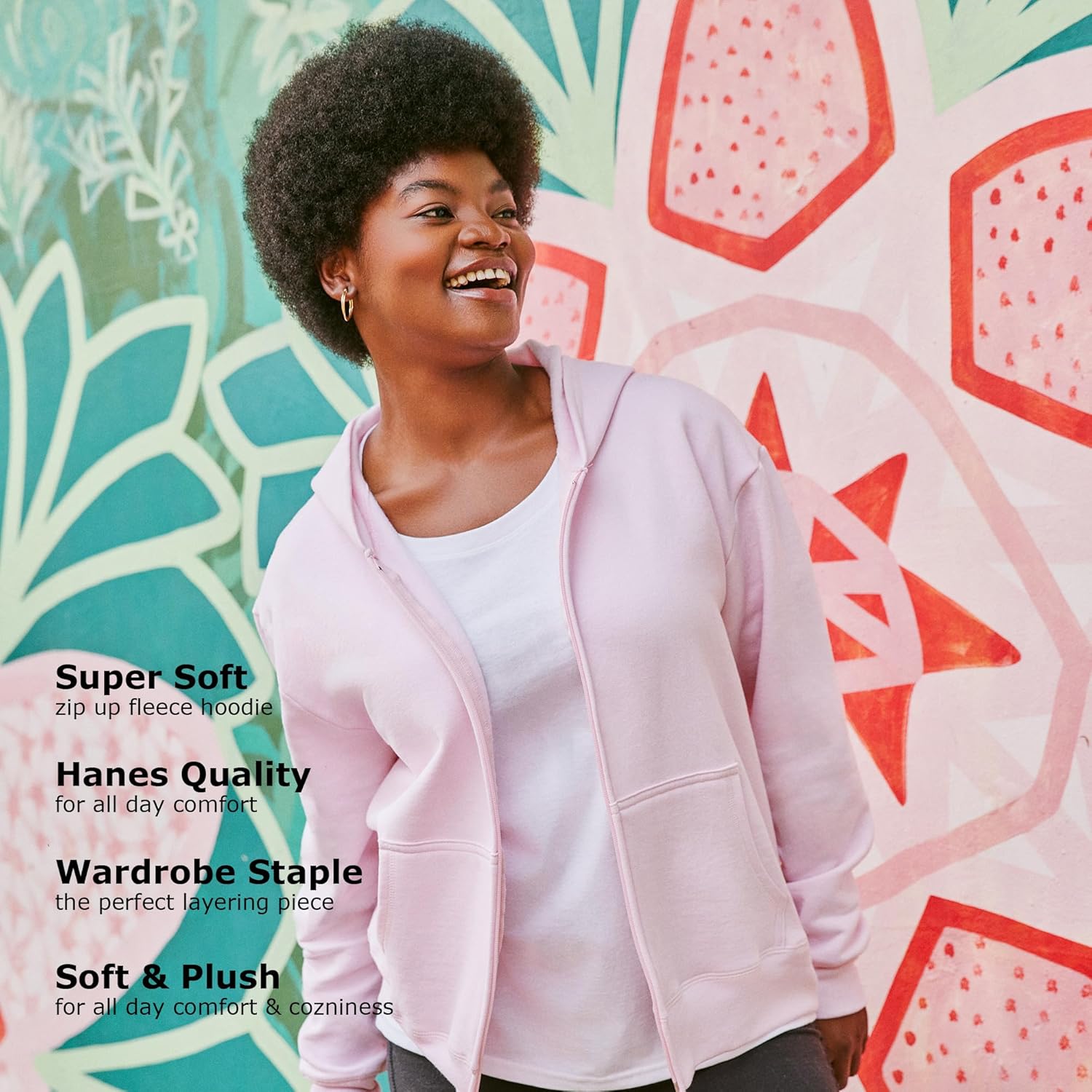 Hanes Women's Hoodie, Ecosmart Fleece Full-zip Hoodie, Zip-up Hooded Sweatshirt