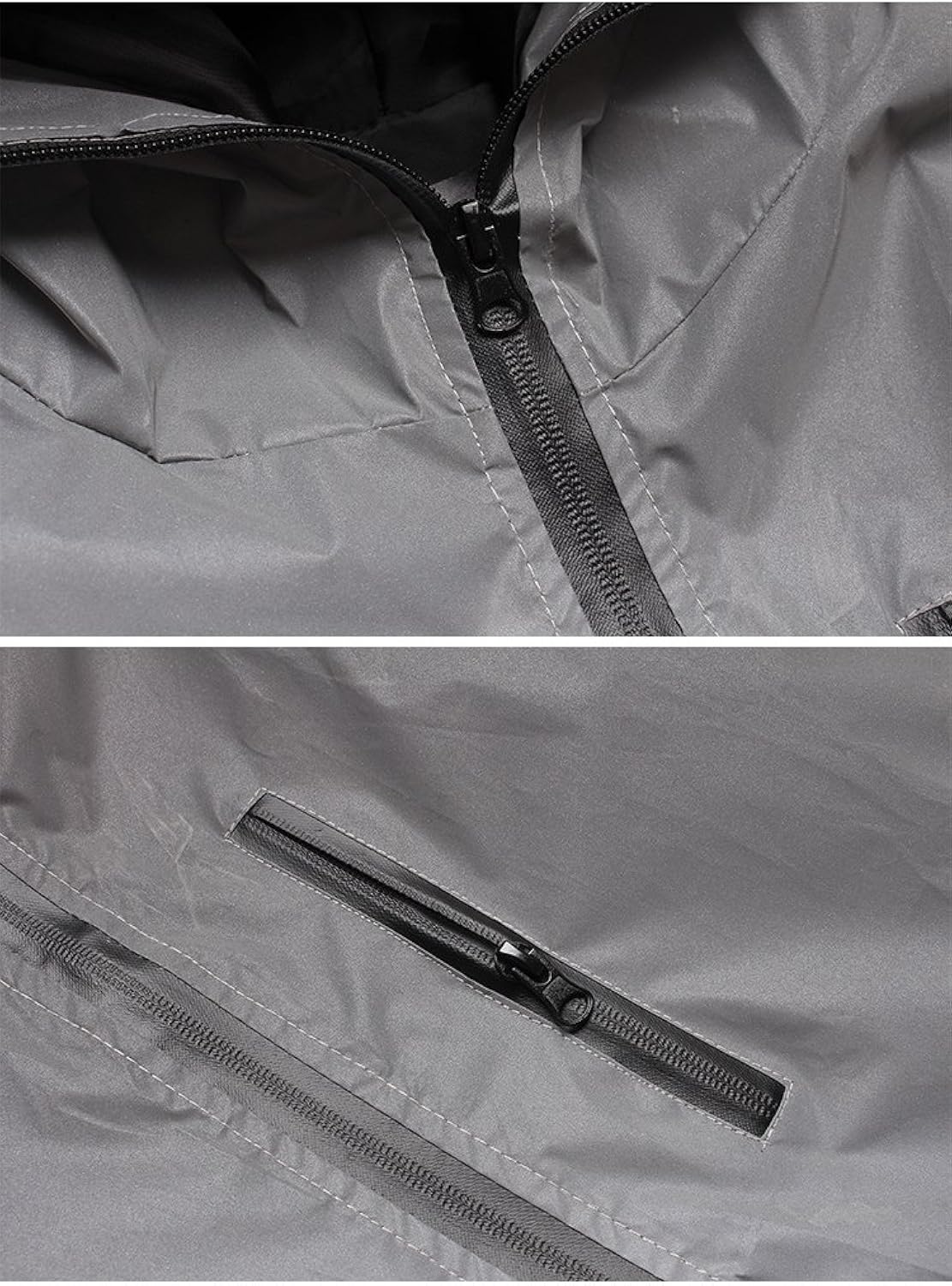 The entire jacket is made of high reflective fabric, and when you are hit by light, it becomes as dazzling, providing high visibility at night and in dim places