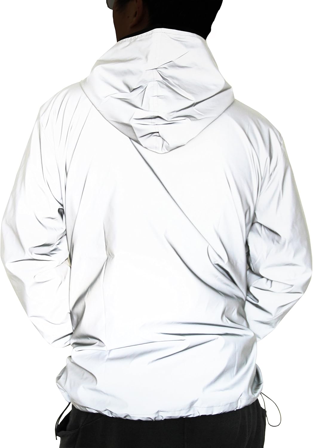 This lightweight reflective windproof jacket is the perfect party and holiday outfit for men and women or teenage boys and girl. It's perfect for teaming with jeans, shorts and sweatpants. Perfect for music festivals, parties and carnivals to wear it on and you'll get everyone's attention.