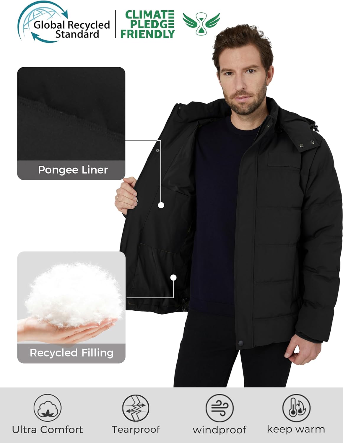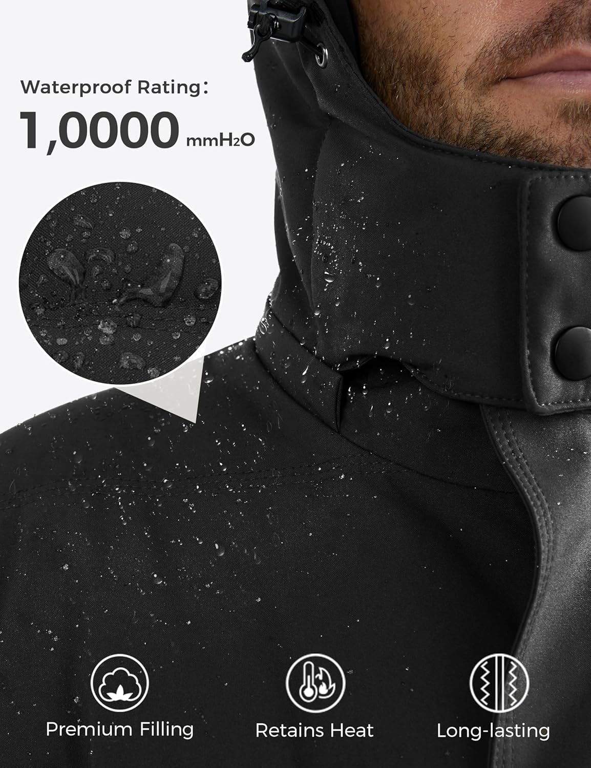 Recycled Fabric and Insulation - The winter jacket for men is not only made with recycled fabric, but it also has a 10000mm waterproof rating that keeps you dry in the rain or warm in snowy weather at all times.
