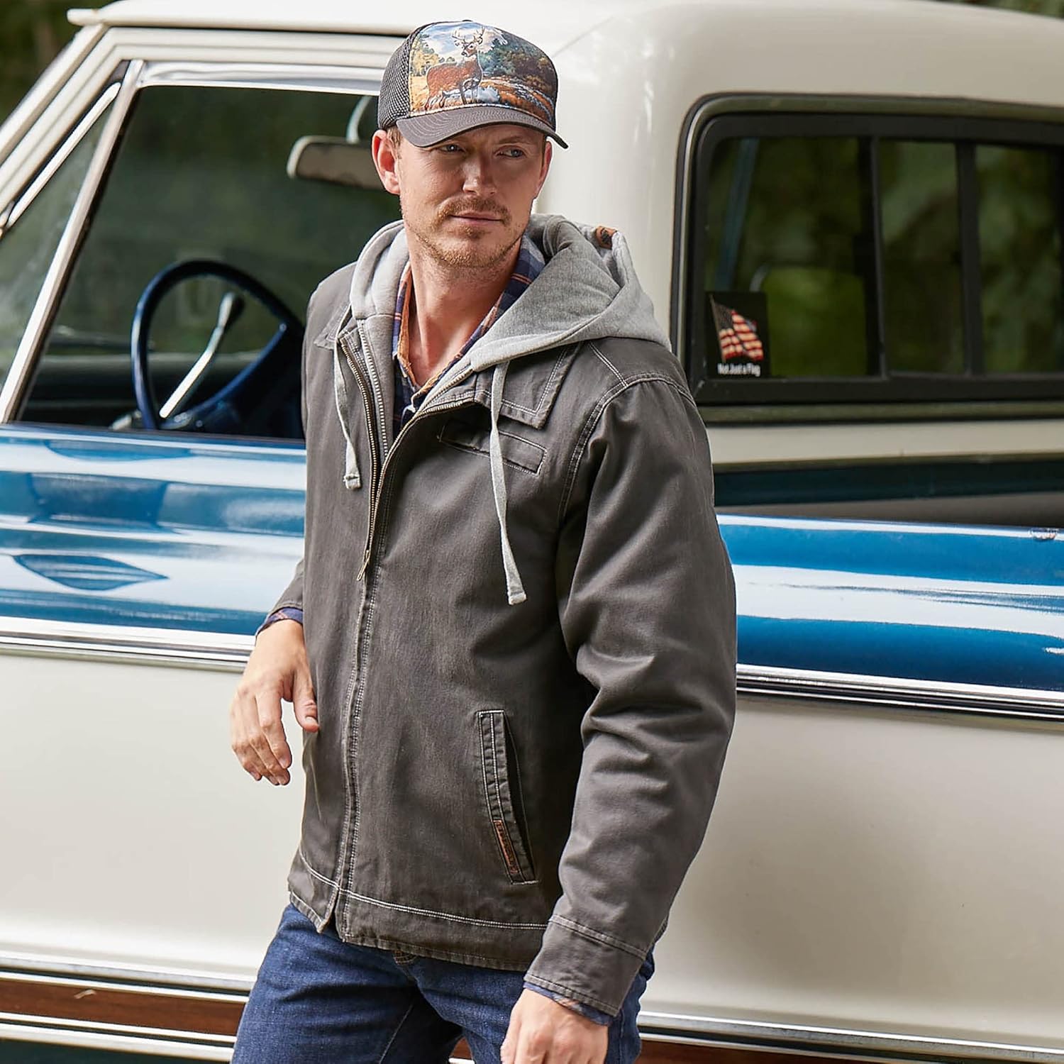 DESIGN: Versatile jacket with removable fleece hood, zippered placket for layered warmth, hand-warmer pockets, plus 5 storage pockets for all needs