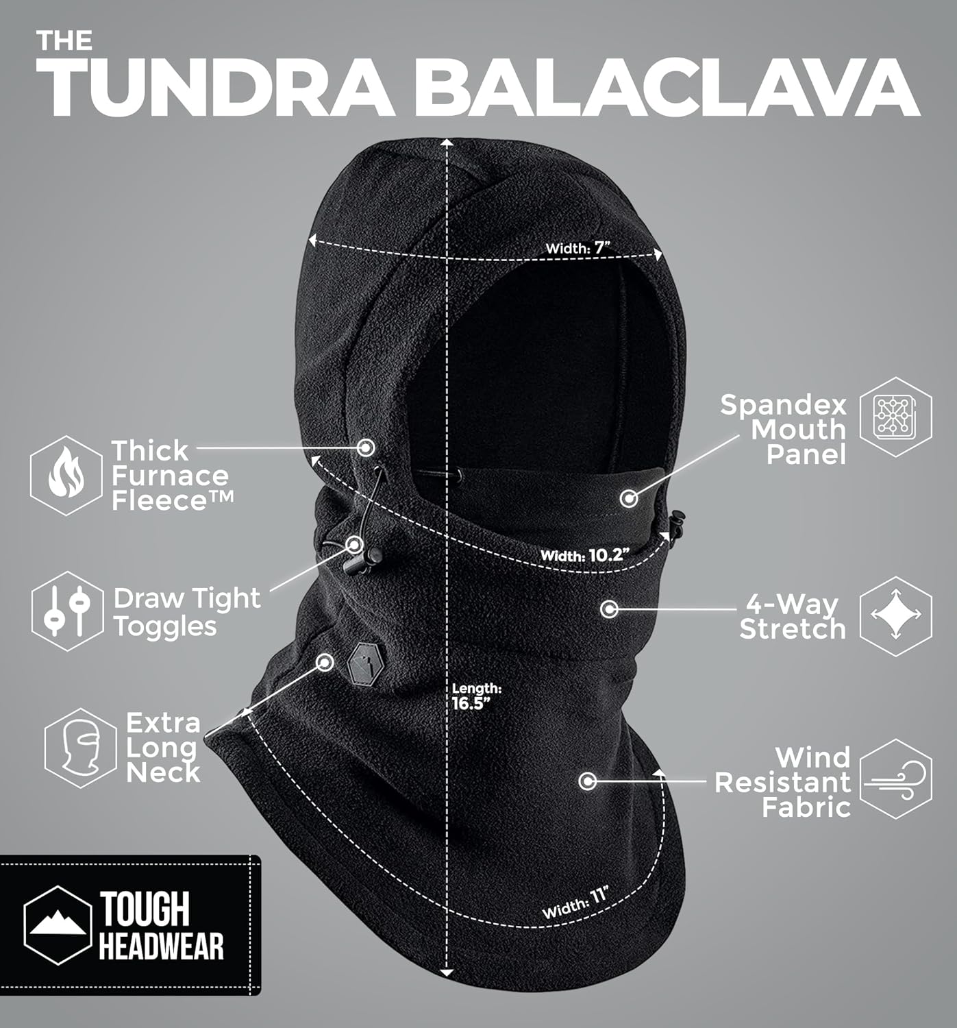 Tough Headwear Fleece Balaclava Ski Mask - Windproof Face Covering - Ski Mask for Cold Weather Gear - Winter Accessories