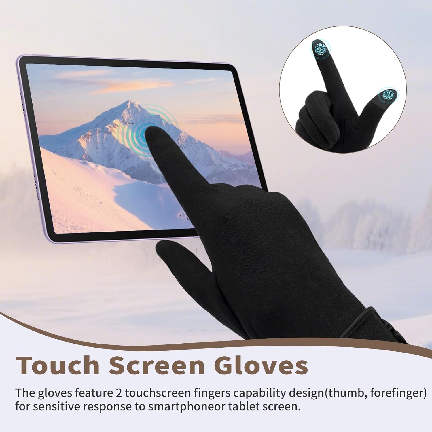 Quality Material: The warm gloves are made of poly spun velour which can keep you warm and very comfortable. Machine washable, Hand wash would be better, hang dry, and do not bleach.