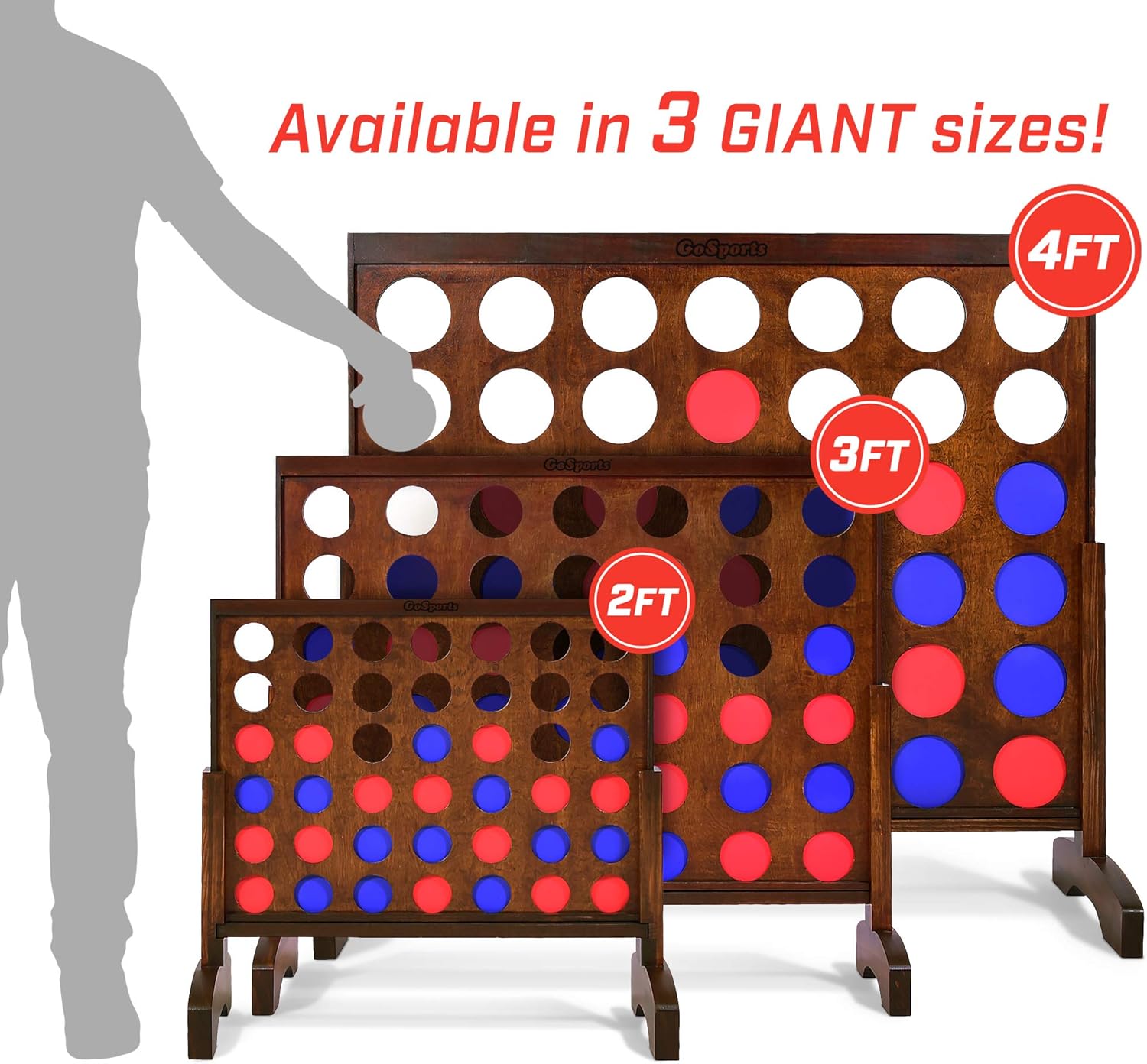 GoSports 3 Foot Width Giant Wooden 4 in a Row Game - Choose White or Dark Stain - Jumbo 4 Connect Family Fun with Coins, C...