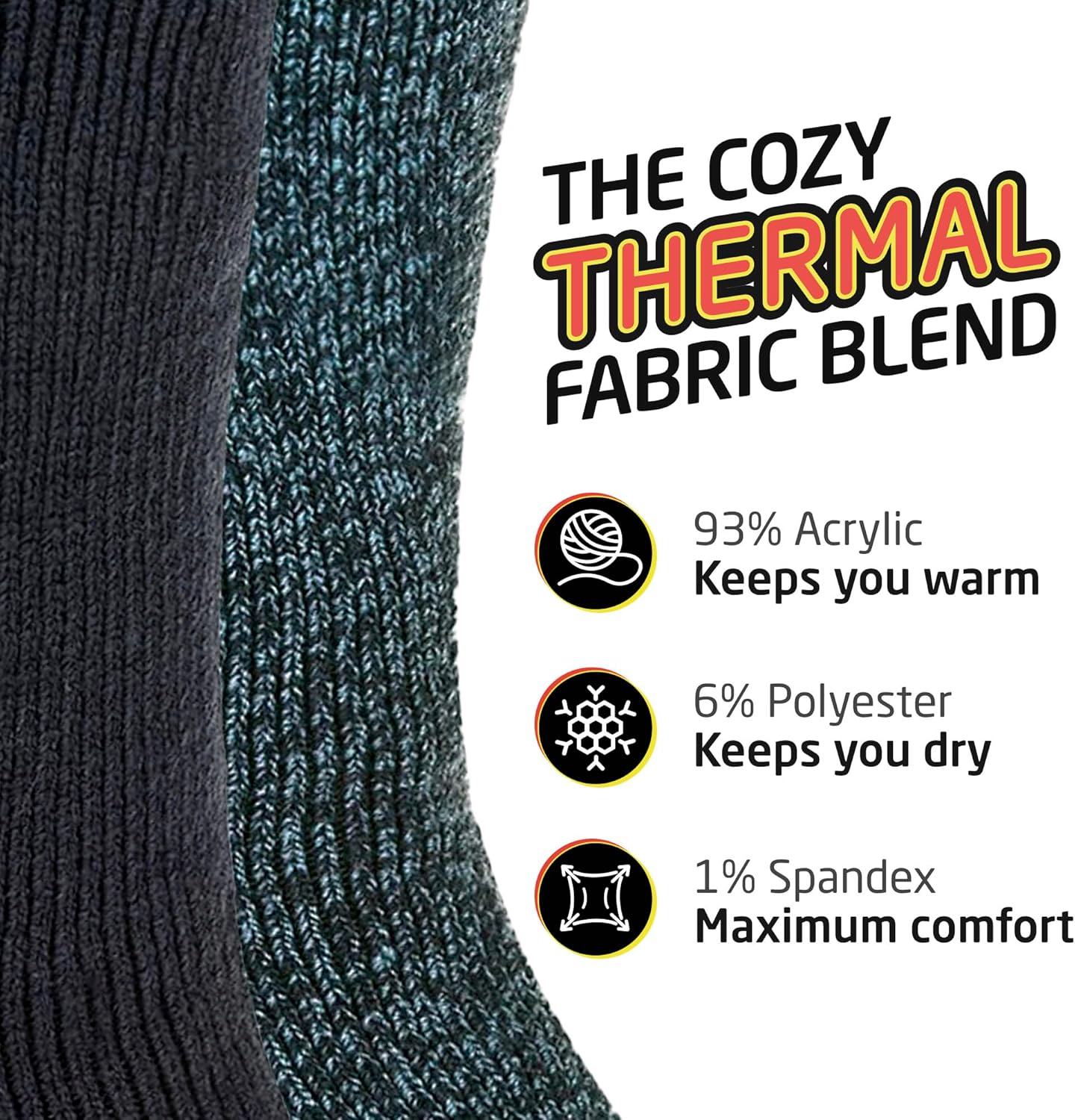Versatile for All Activities: Made with 93% acrylic for cashmere-like softness, 6% polyester, and 1% spandex, these mens winter socks offer warmth and breathability. Great for hiking, skiing, or relaxing at home