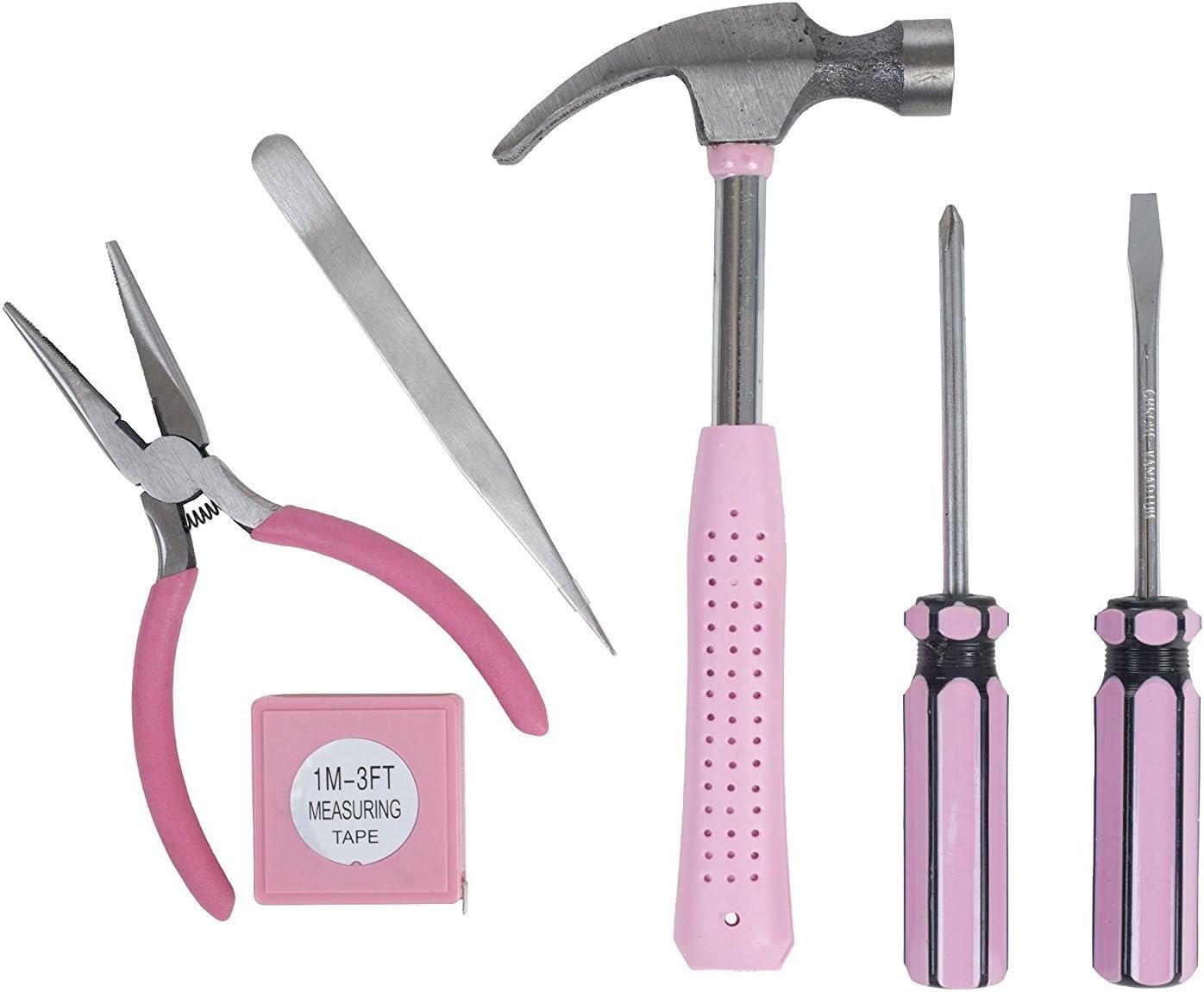 USEFUL – 7-piece tool set is designed to tackle most assembly, repair projects, or little emergencies around the house or office. Fixing leaky kitchen or bathroom faucets, hanging up pictures, or tightening up a loose screw on your bike, this tool set has everything you will need from hammering, screwing, measuring, and more.