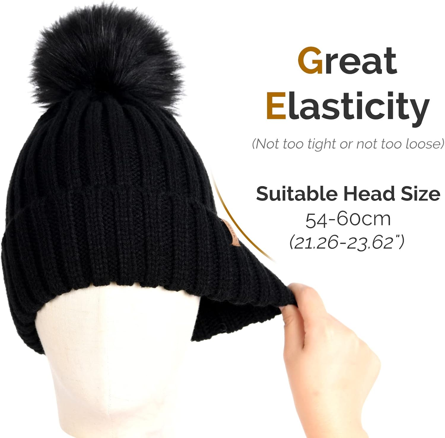 Simple Style: You can wear the winter hat when you dress up casual and youth style outfit, or can be used as ski cap; Pair them with simple jeans, skirts or shirts and you're all set for the day; Knit hat covers your ears comfortably;You need't worry about your ears in winter; Copper buckle at the top of the hat so the pom pom could be removed easily;