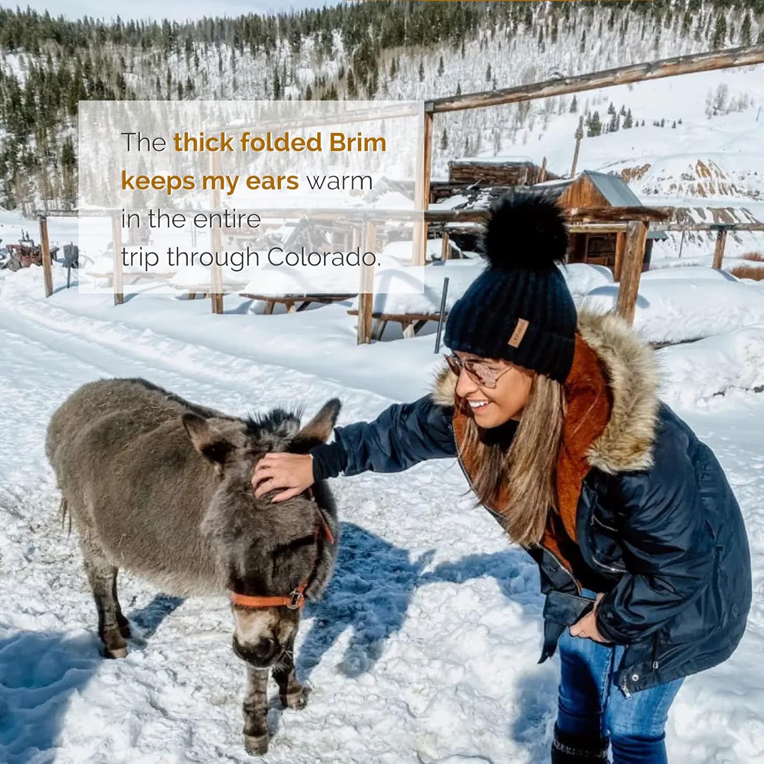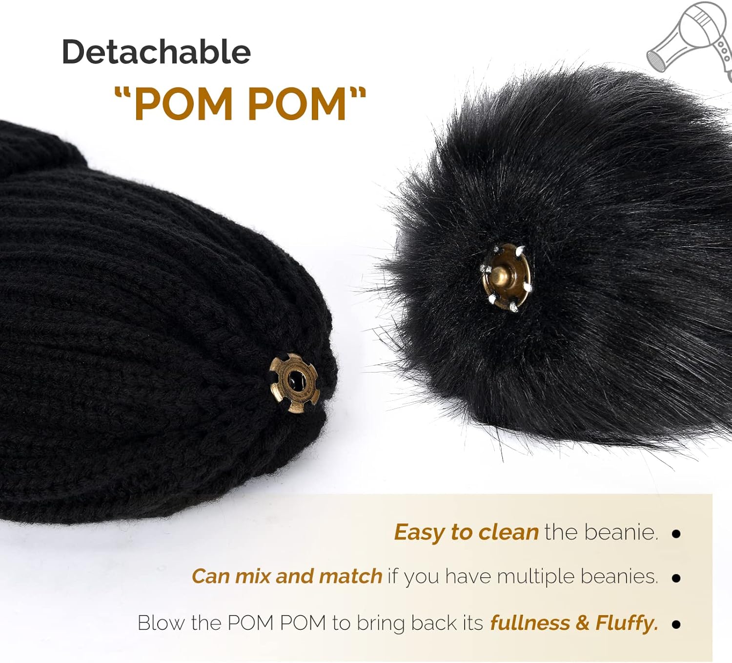 Pom Pom Hat - The winter hat with a faux fur pompom,this puff ball is bigger,super cute and removable;The pom pom snaps securely in place when you want to wear it, and is easily removable when you don't;