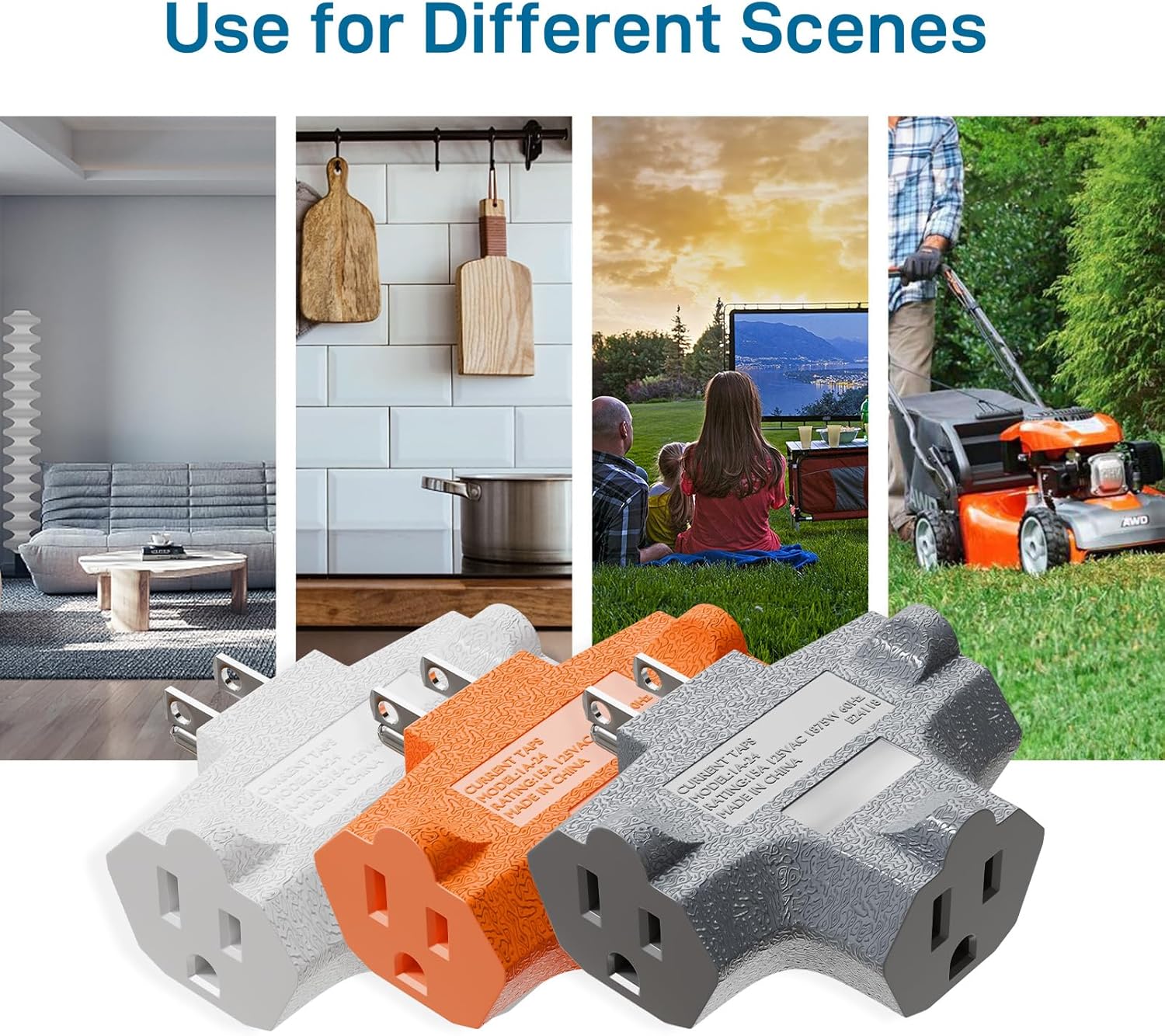 3 PLUG OUTLETS - Extender turns one grounded outlets into three, Accepting Both Polarized and Grounded Plugs.