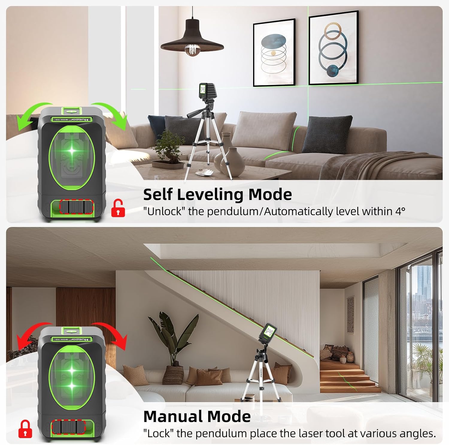 Selectable Laser Line Modes: Choose between a single line or cross line based on your needs. The single line mode saves battery life and extends working time, while the cross line mode is perfect for precise measurements in larger areas.