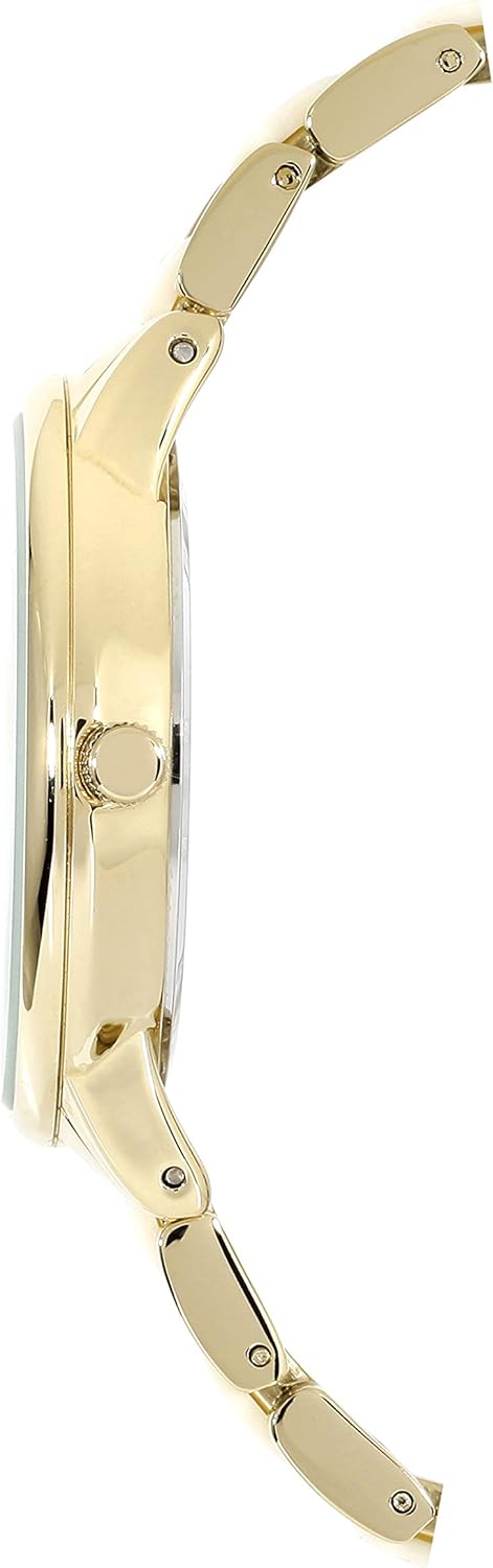 Boyfriend-style watch with slender hour markers featuring printed logo at center dial and ivory resin center links on bracelet