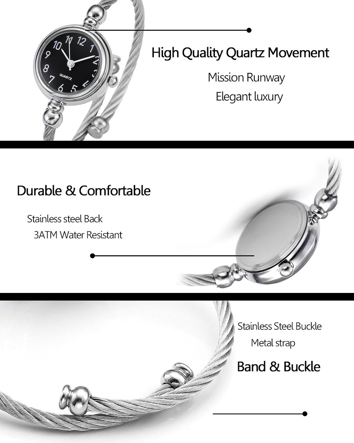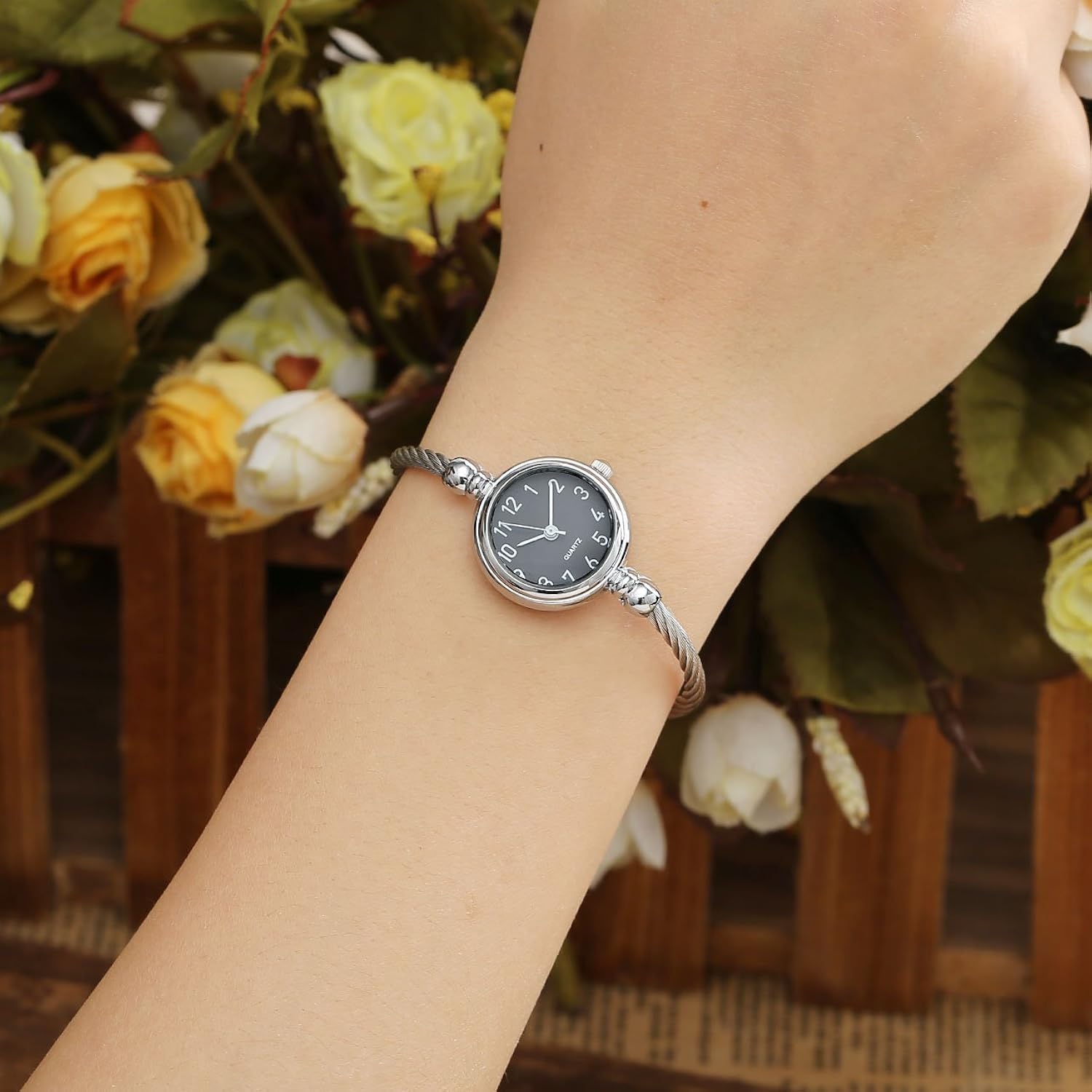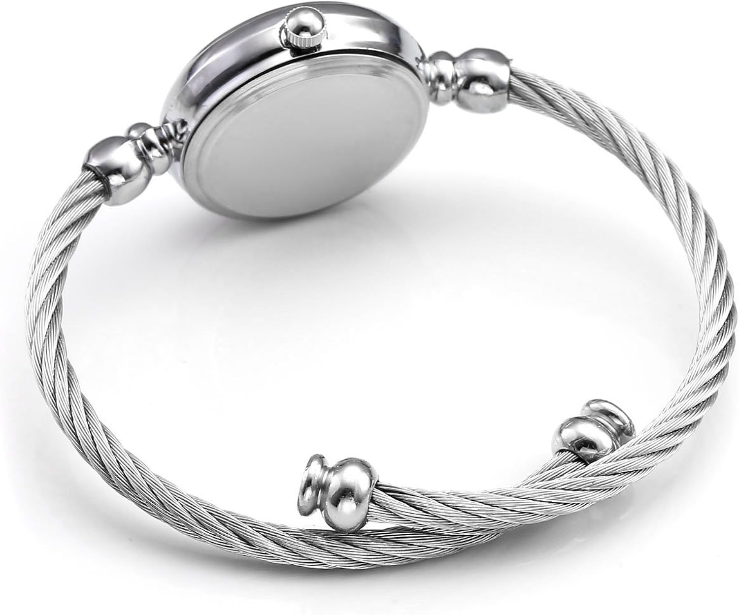 Top Plaza Womens Fashion Analog Quartz Bangle Cuff Wrist Bracelet Watch Elegant Stainless Steel Wire Band Arabic Numerals ...