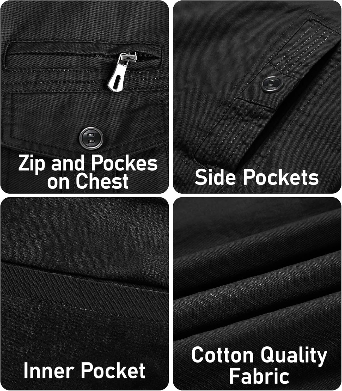 Utility pockets: This multi pocket cargo jacket has 7 pockets, 2 side hand pockets, 2 chest zipper pockets, 2 chest button-flap pockets and 1 inner pocket, practical and stylish