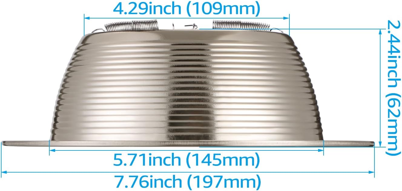 NOTE: This trim's baffle the maximum inner diameter is 5.71 inches, the top diameter is 4.29 inches, the ring diameter is 7.76 inches, and the height is 2.44 inches. Please confirm compatibility with your can before purchasing