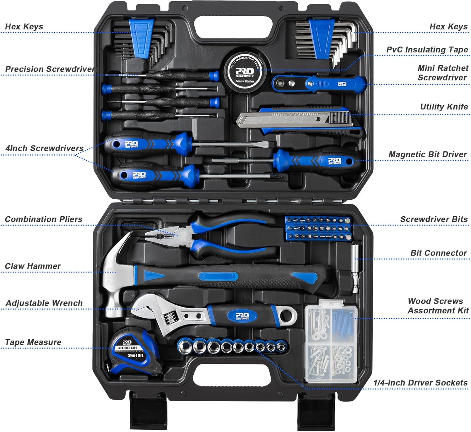 Prostormer 160-Piece Home Repair Tool Set, General Household Hand Tool Kit with Toolbox Storage Case for House, Garage, Co...