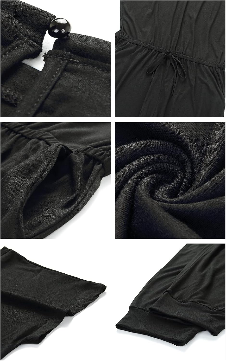FEATURES: Elastic Waist, Beam Foot, Round Neck, Off the Shoulder, Short Sleeve, Solid color, Elastic Waist, Keyhole Back, Long Pants Jumpsuit, Casual Style, Lightweight and Breathable