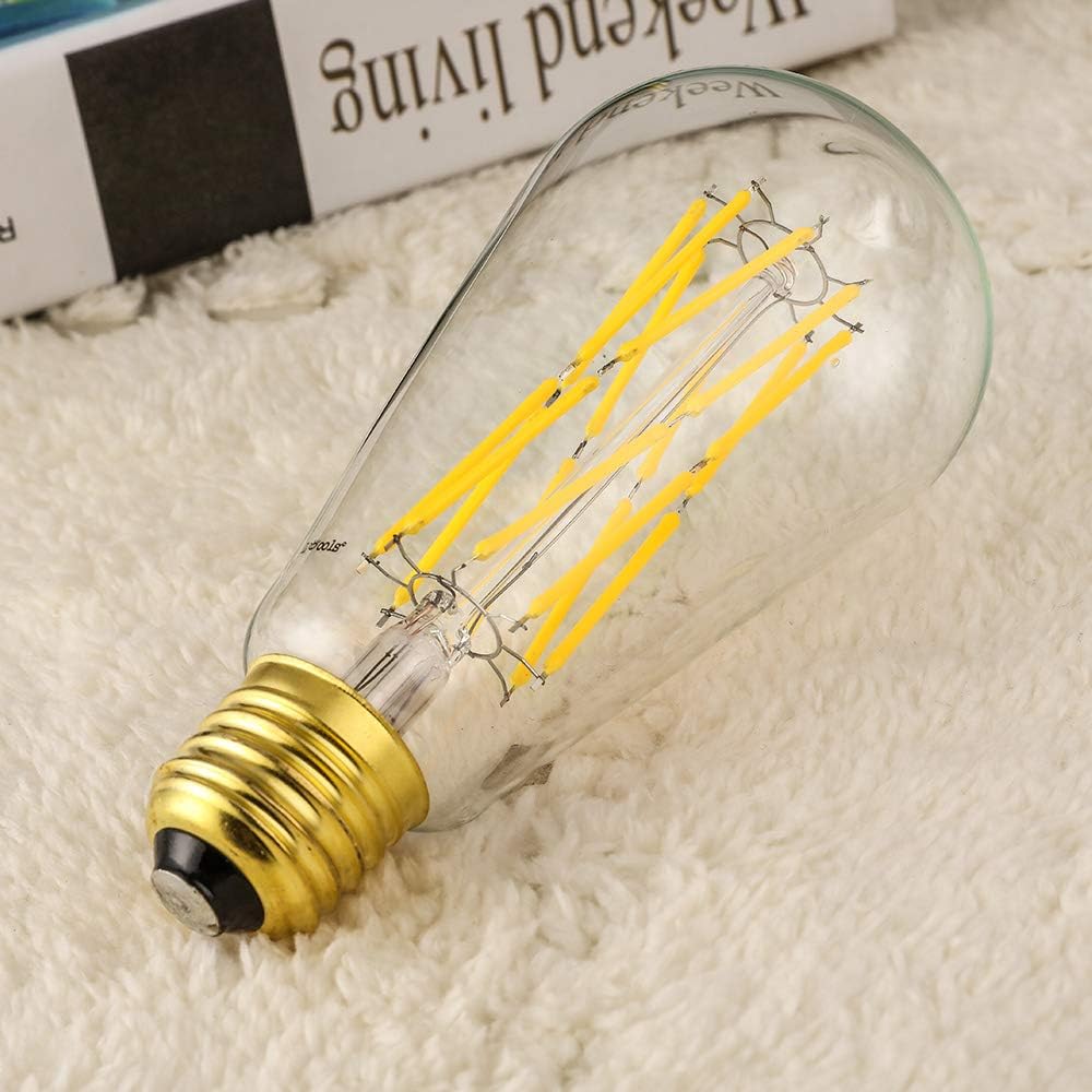 Afety & Energy conservation:The LED Filament Light Bulbs conserve energy, The Brightness equal to 100W traditional Incandescent bulb. The temperature will never hurt your hand even after a couple of hours of use. High-grade electric source & chip Set minimize the light pollution like glare & stroboflash and protect your eyes from stimulation.