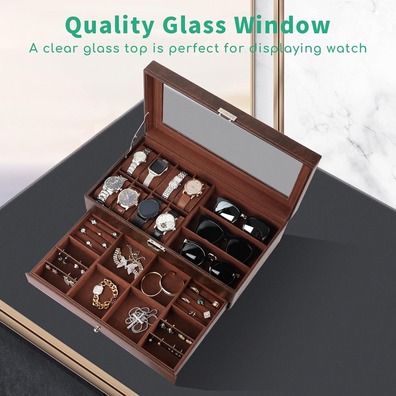 TomCare Watch Box Watch Case Jewelry Organizer Holder Jewelry Display Box Case Sunglasses Storage Organizer Lockable with ...