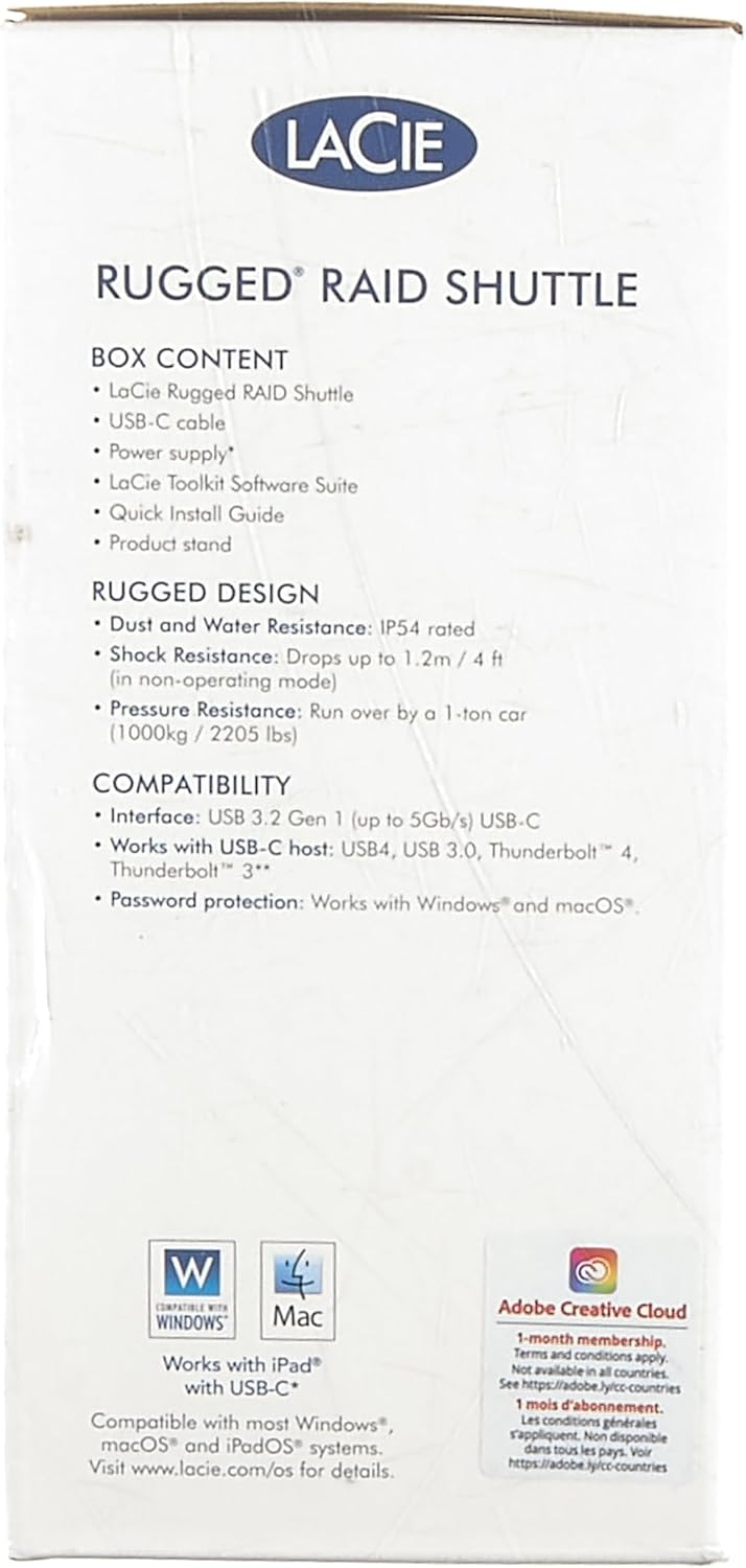 LaCie Rugged Raid Shuttle 8TB External Hard Drive Portable HDD - USB-C USB 3.0 Compatible, Drop Shock Dust Water Resistan...