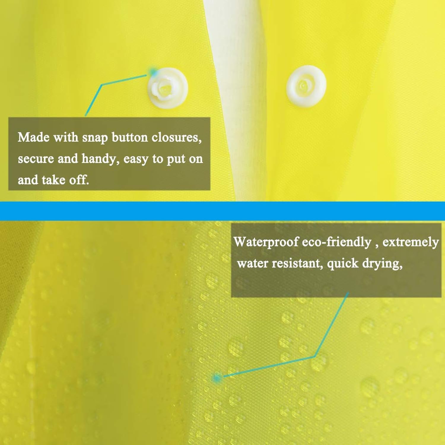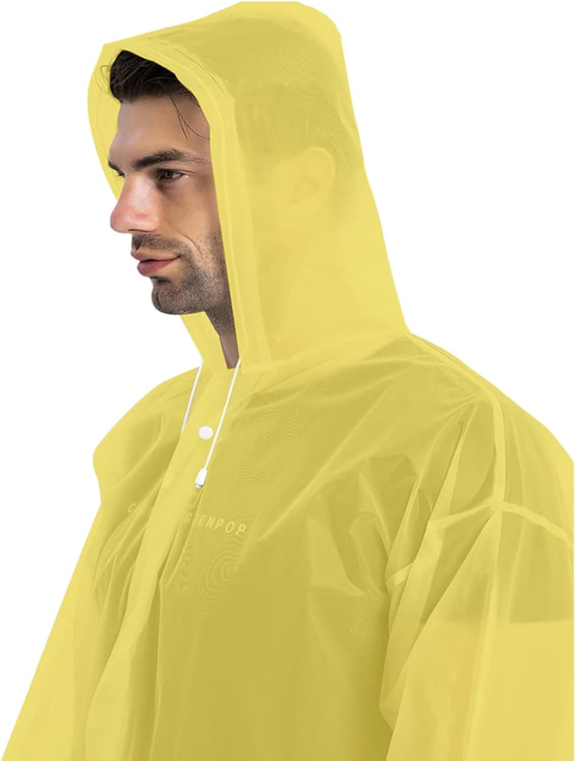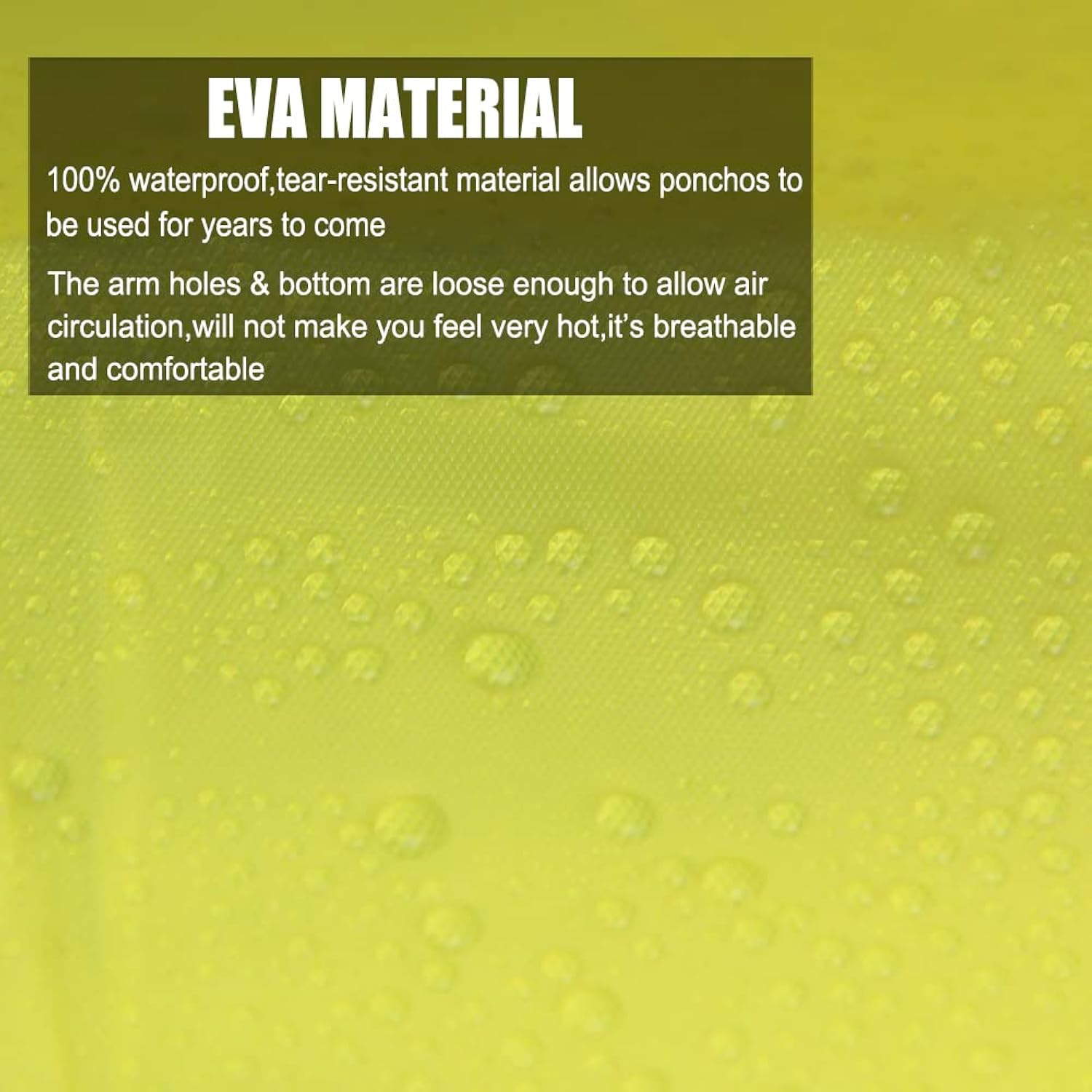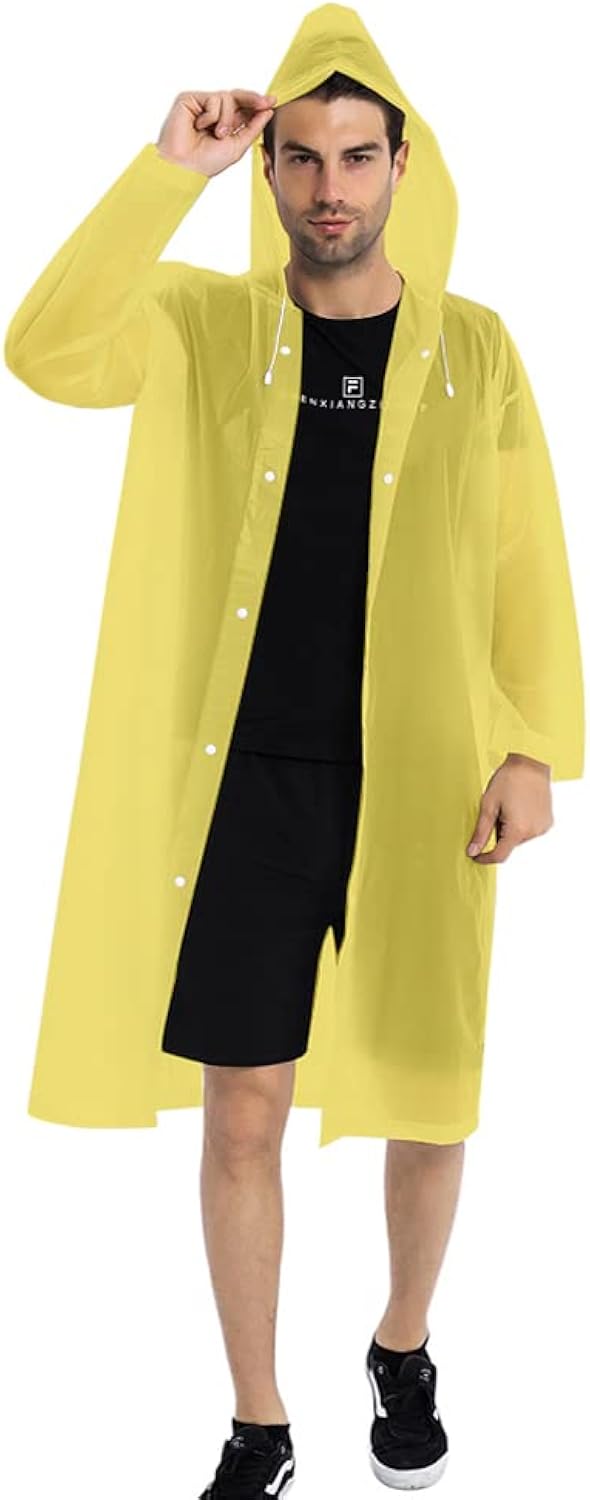 *SAFE & HIGH-QUALITY RAINCOAT: Made of 100% EVA, an environmentally friendly material, the rain poncho is non-toxic, no smell, and is harmless. Extremely waterproof and lightweight, the long sleeves and big drawstring hood design will keep your arms, head, and neck dry.