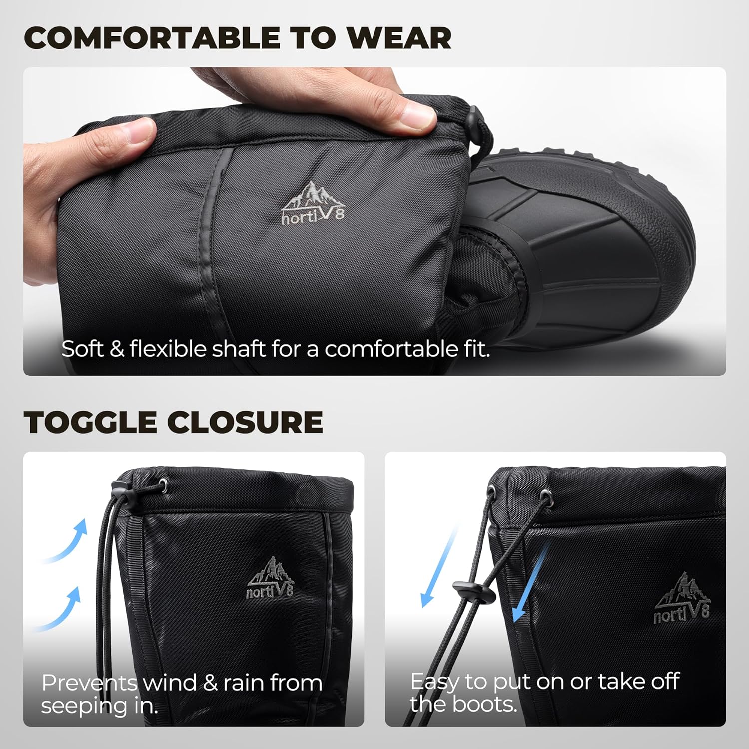 NORTIV 8 Men's Waterproof Winter Snow Boots Insulated Fur Liner Lightweight Outdoor Tall Boots