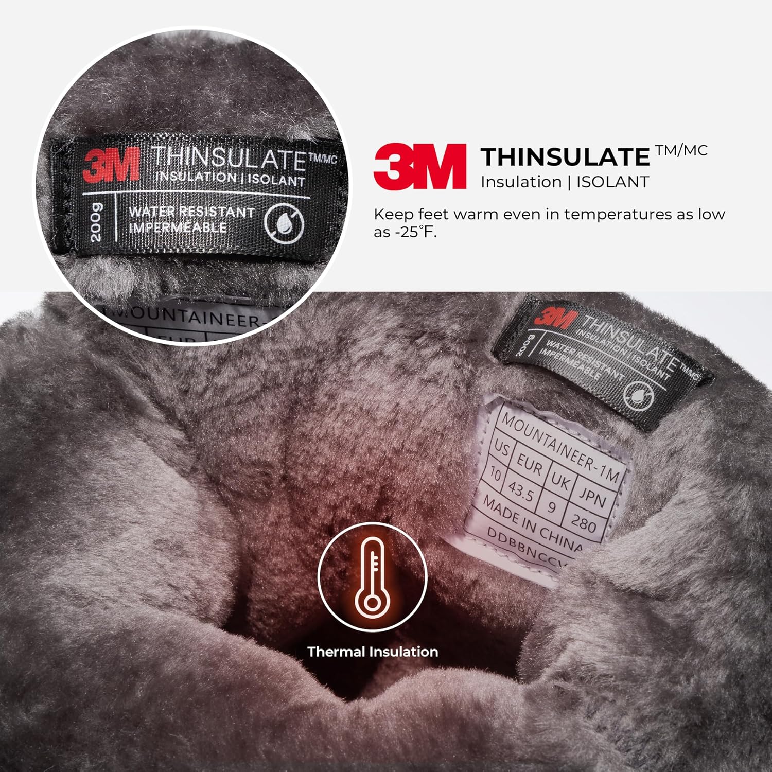 3-Layer Warming System: (1) The faux fur insole provides all-day support and comfort. (2) 200g Thinsulat insulation materials keep your feet warm even in temperatures as low as -25°F. (3) The plush lining offers better protection in harsh weather conditions.