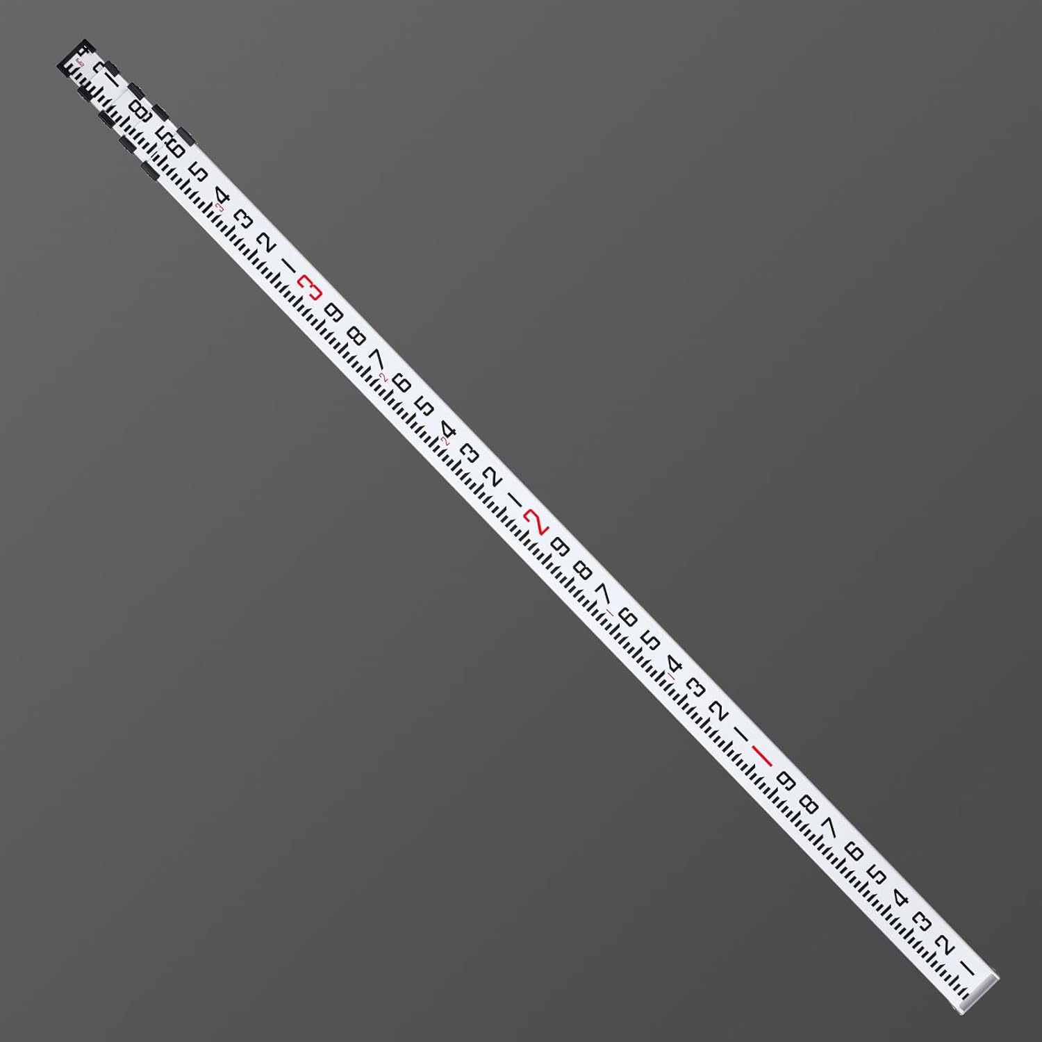 Graduations on both sides, front side marking in feet/tenths, back scale in feet/inches