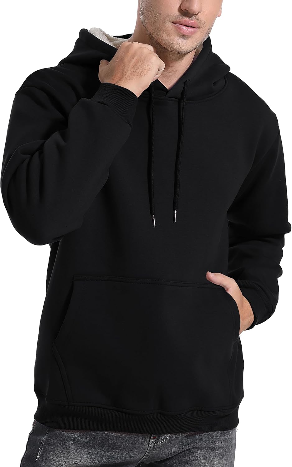 Flygo Men's Casual Fleece Sherpa Lined Hoodie Winter Warm Pullover Hooded Sweatshirt