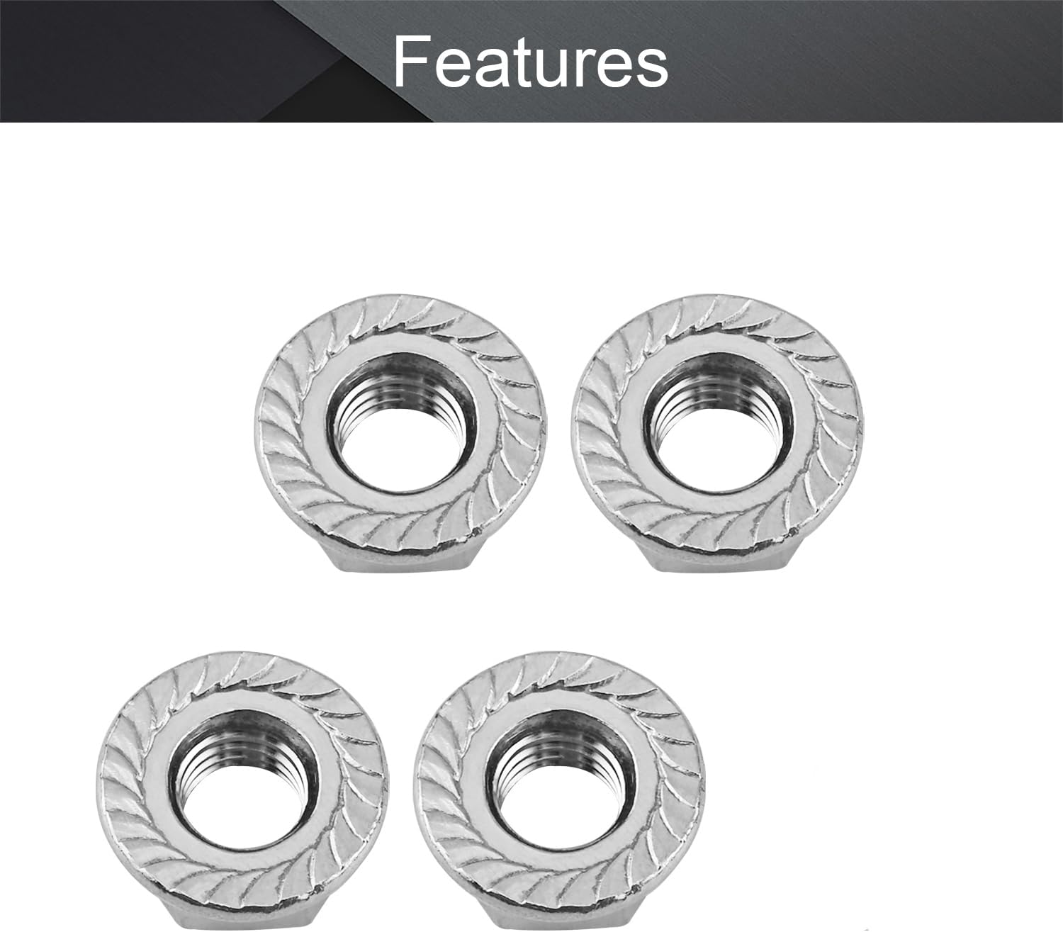 ✅【MATERIAL】- Made of 304 stainless steel material, the Hex Serrated Flange Nut have high hardness and great corrosion resistance, which are durable and non-deformable. Most importantly, they are non-toxic and pollution-free environmentally friendly products.