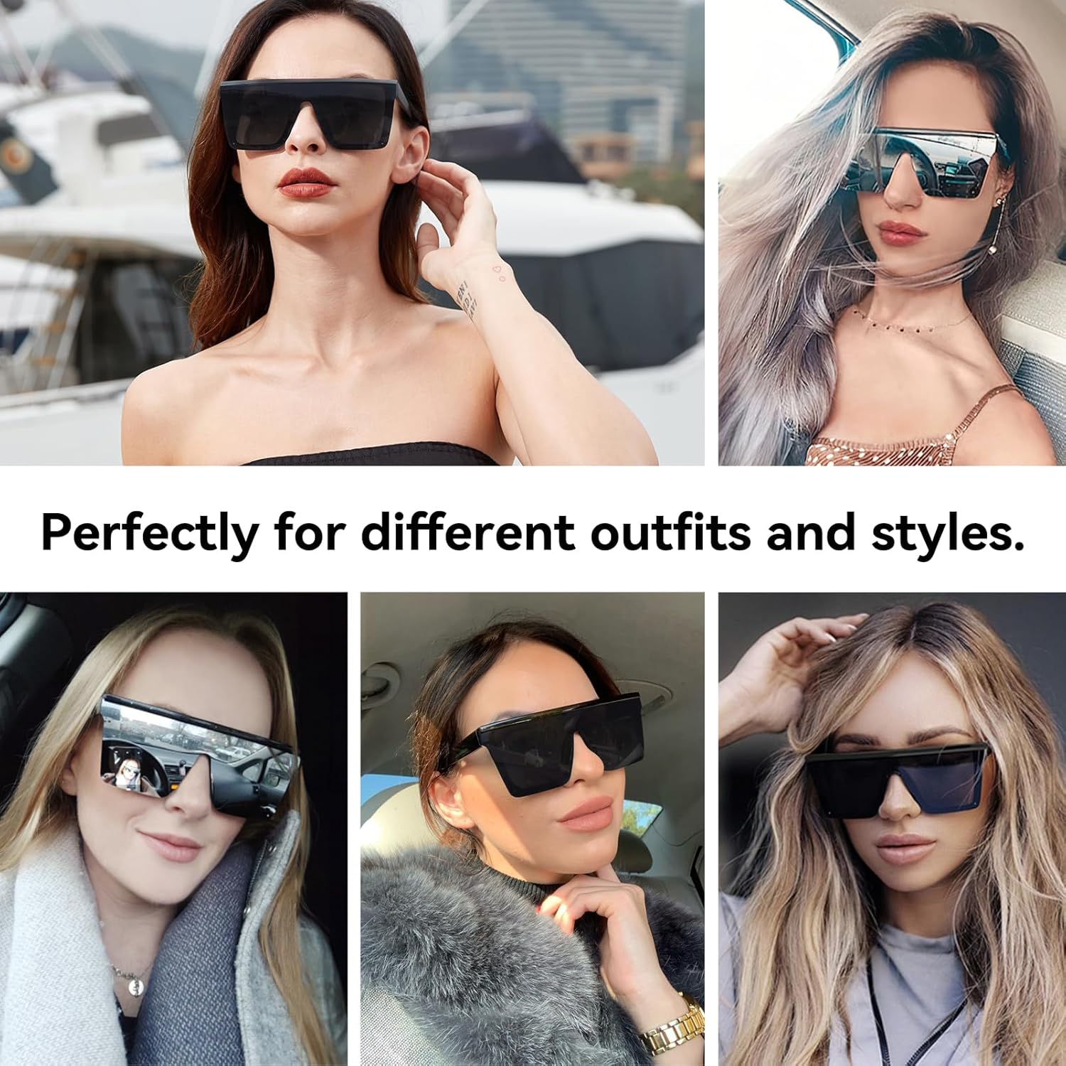 ►【OVERSIZED SUNGLASSES DESIGN】 -Fashion Oversized Square Siamese Lens Sunglasses for Women Men. Oversized square sunglasses are a stylish brand design that shows your uniqueness and fashion. It can perfectly cover your eyes and eye area, and protect your eyes from the damage and fatigue caused by ultraviolet rays in all aspects.
