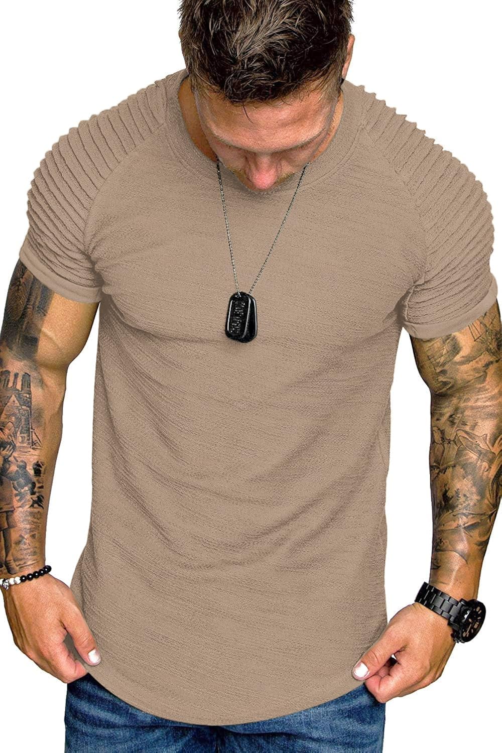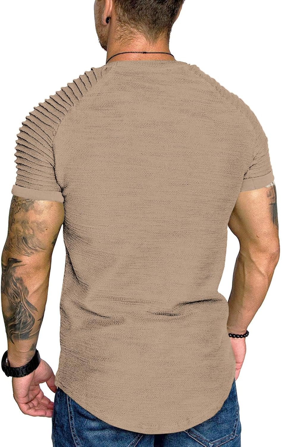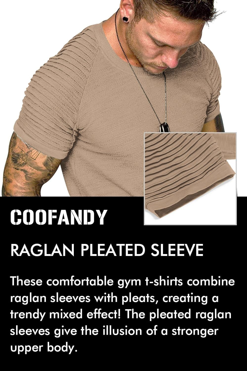 COOFANDY Men's Muscle T-Shirt Pleated Raglan Sleeve Bodybuilding Gym Tee Short Sleeve Fashion Workout Shirts Hipster Shirt