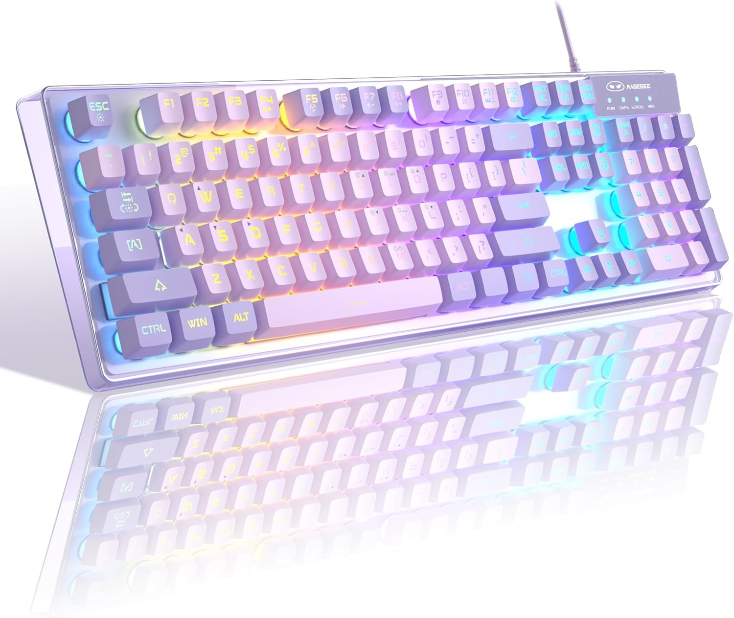 【Full Size Keyboard, Plug and Play with It】104 Keys Full Size Keyboard. Featuring standard keyboard layout with F-keys ( function keys ) and number pad. Floating keycaps are removable and feel good in the hand. The wired keyboard brings you efficient typing while at work or gaming. Plug and play with it, no other driver or software needed.