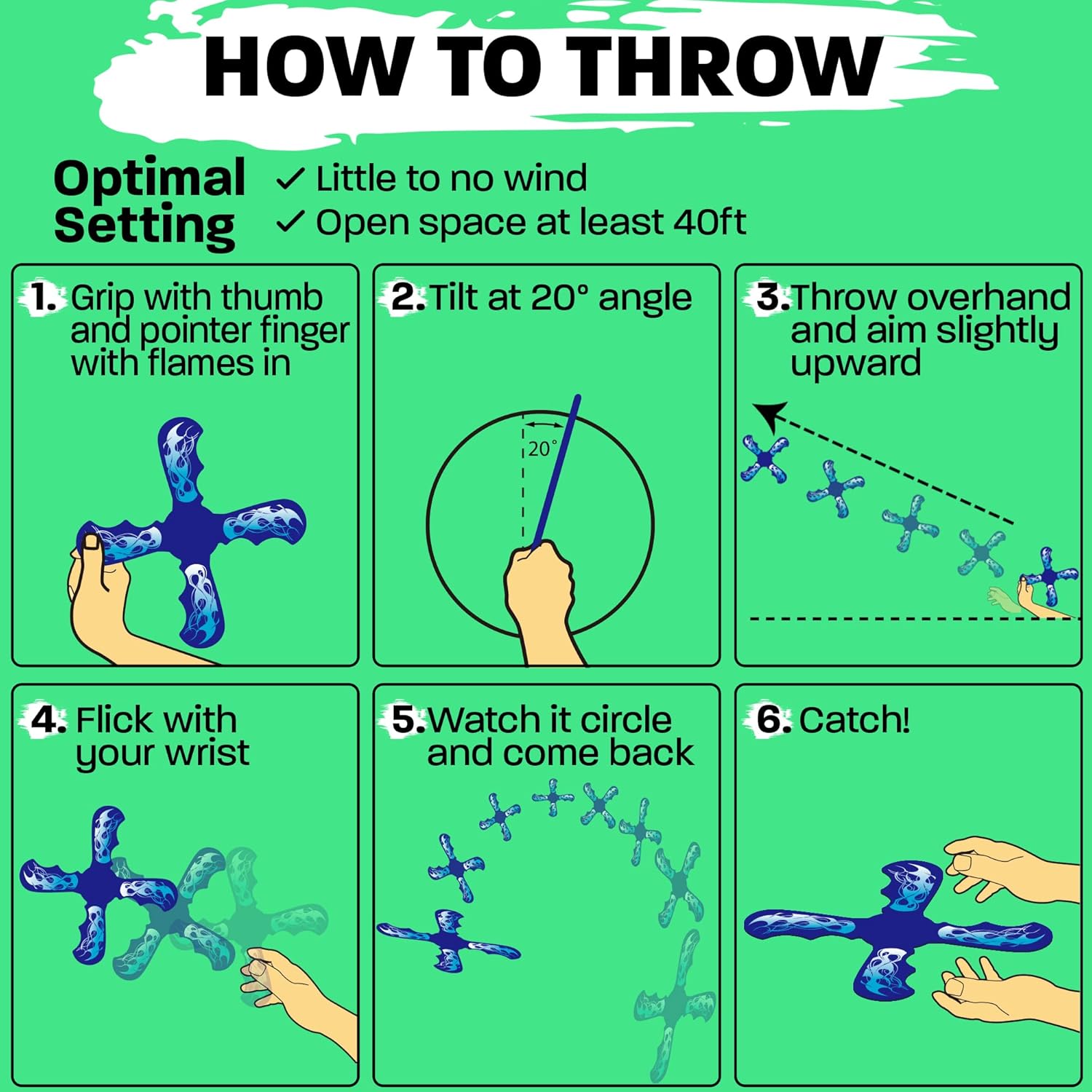 ???? ?? ?????: Embrace the simple joy of throwing a boomerang and having it come back to you with ease. With our beginner-friendly easy to throw design crafted from durable EVA foam. It's stable flight and comfortable grip make throwing and catching a breeze, ensuring a quick and enjoyable learning experience for kids age 6 and up.