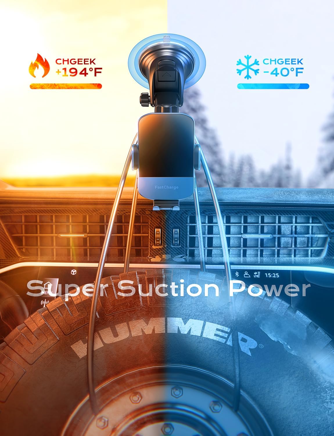CHGeek Wireless Car Charger, 15W Fast Charging Auto Clamping Car Charger Phone Mount Phone Holder fit for iPhone 16 15 14 ...