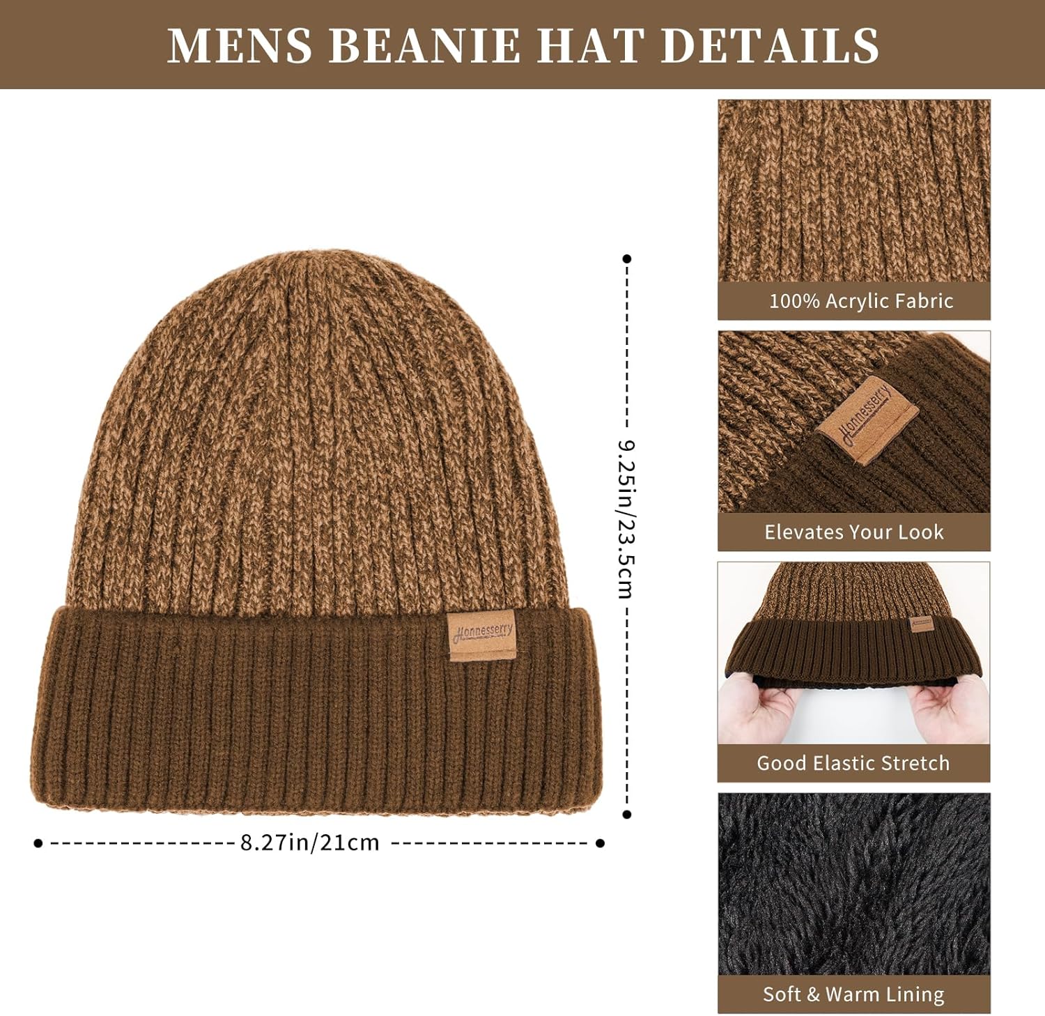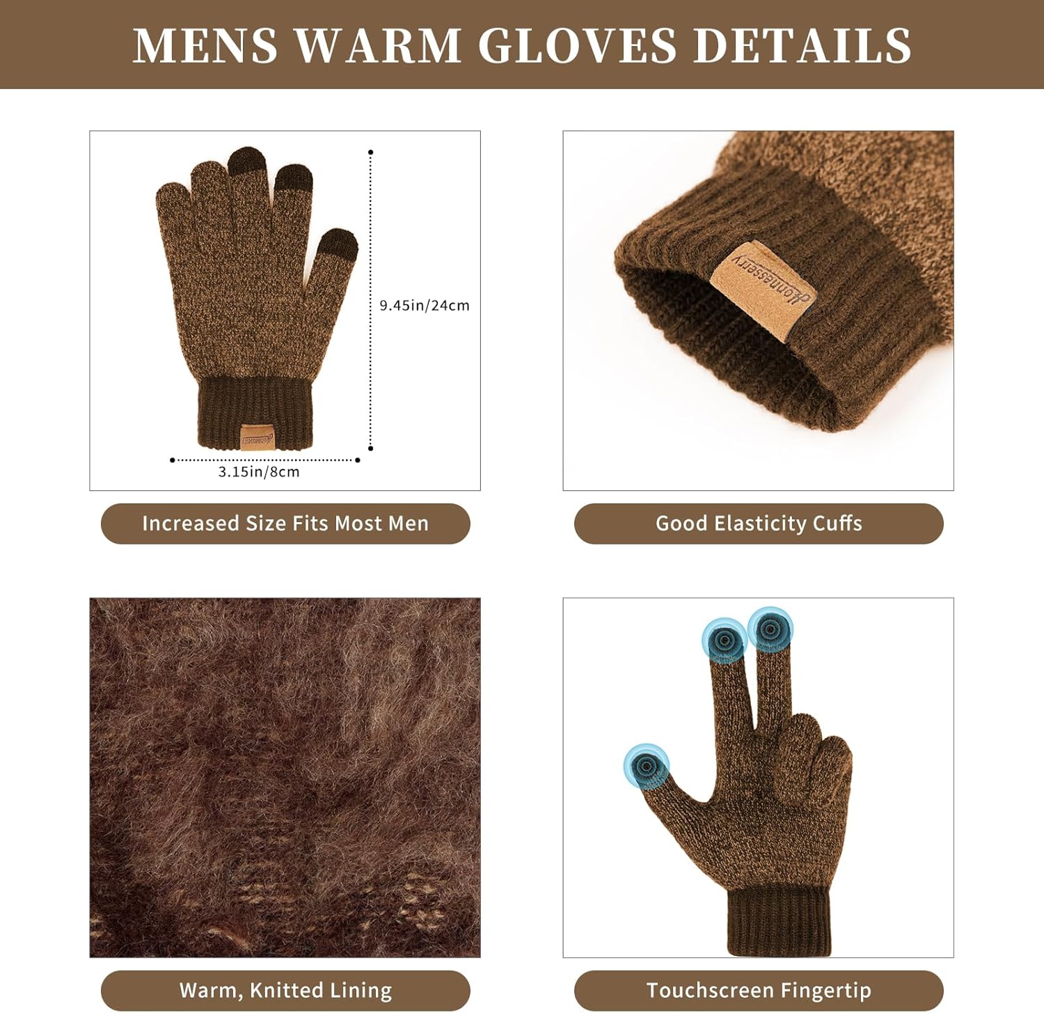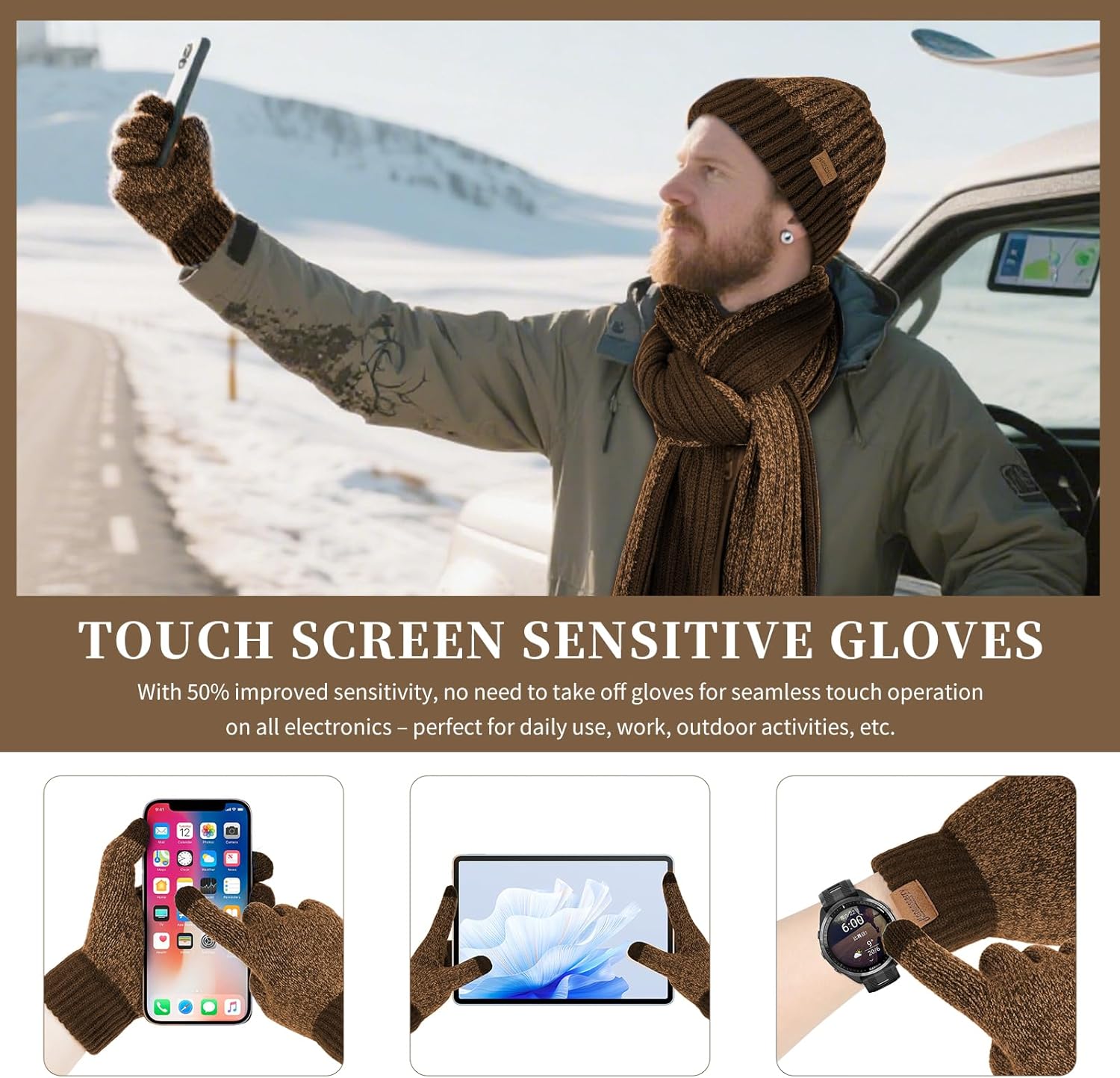 Thicken and Warmer Yarn -- The Total Weight of the 3 Pcs Winter Hat Set for Men and Women is up to 0.95 lbs (447g). The Beanie Hat and Knit Touchscreen Gloves are Fleece Lined. Must-have for Cold Weather Self-Use and Great as a Christmas Gift for Your Boyfriend, Husband, Brother, Close Friend.