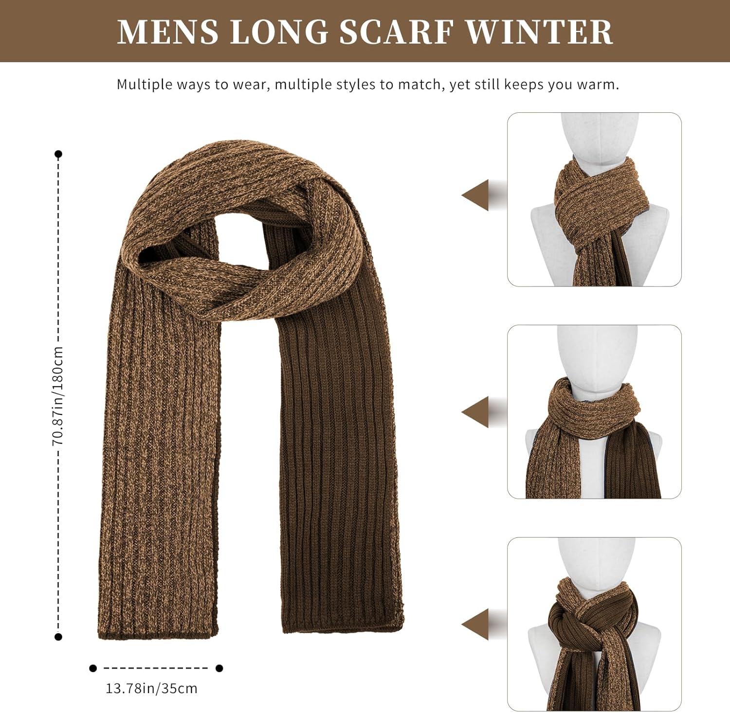 One Size Fits Most -- Knit Warm Long Scarfs for Men: The Length of the Mens Scarf is 72.4inch (196cm), Long Enough to Wear it Many Ways, Simple and Classic Plain Style are Must-Have for Your Wardrobe
