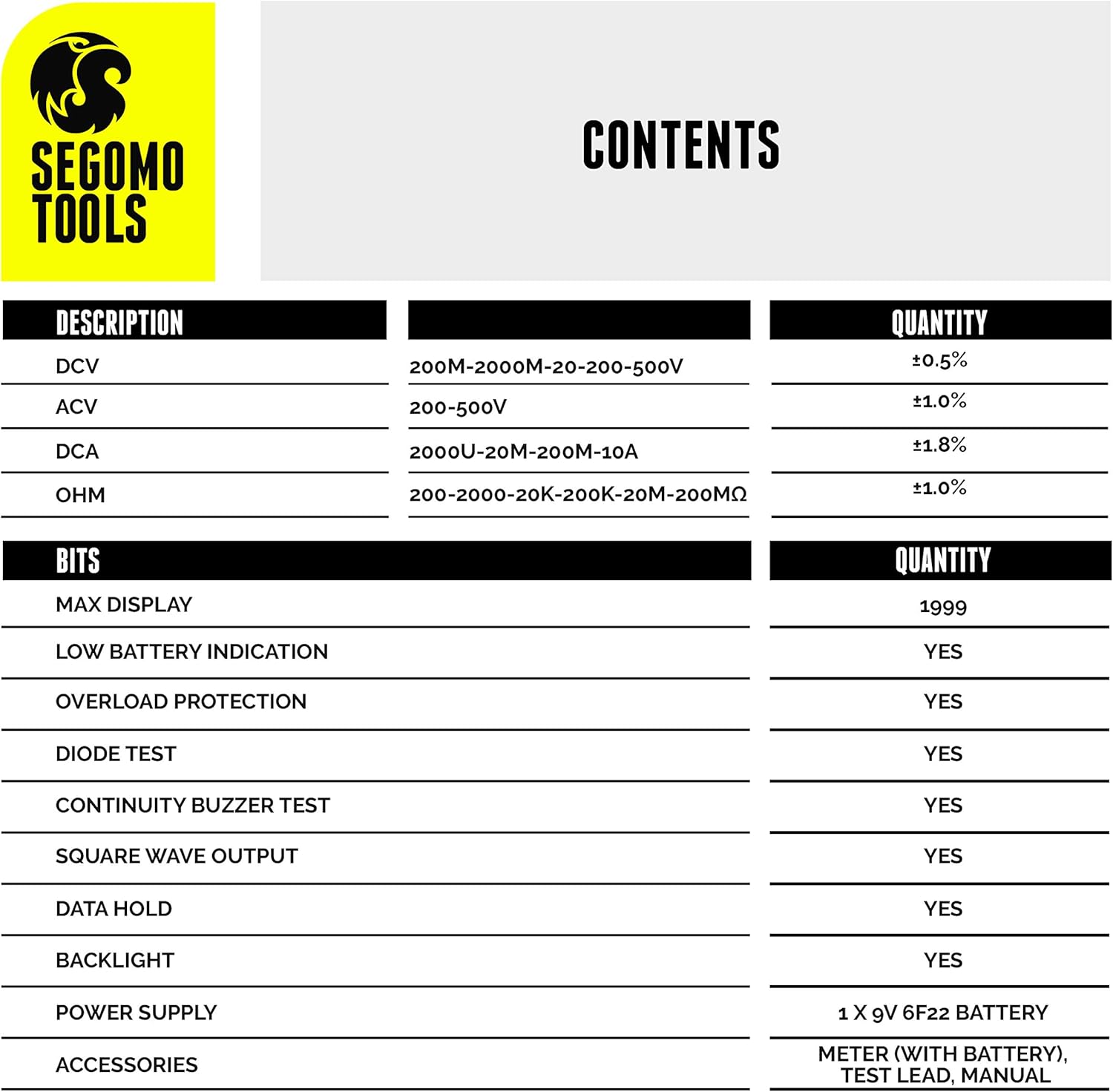 [ Can Be Used For Different Jobs ] This multimeter tester safely and accurately measures AC/DC Voltage, DC Current, Resistance, Continuity and Diodes and is ideal for different jobs - you can use it both for automotive and household use.