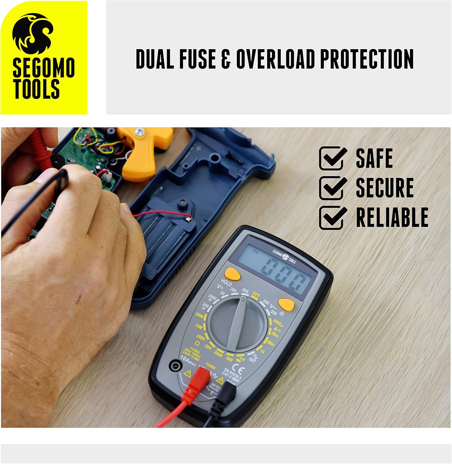 [ Work With Safe Tool ] The anti-burn, dual fuse and overload protection of this voltmeter provides you with safety, security and reliability. Data hold function freezes measurements on the LCD display allowing for easy recording.