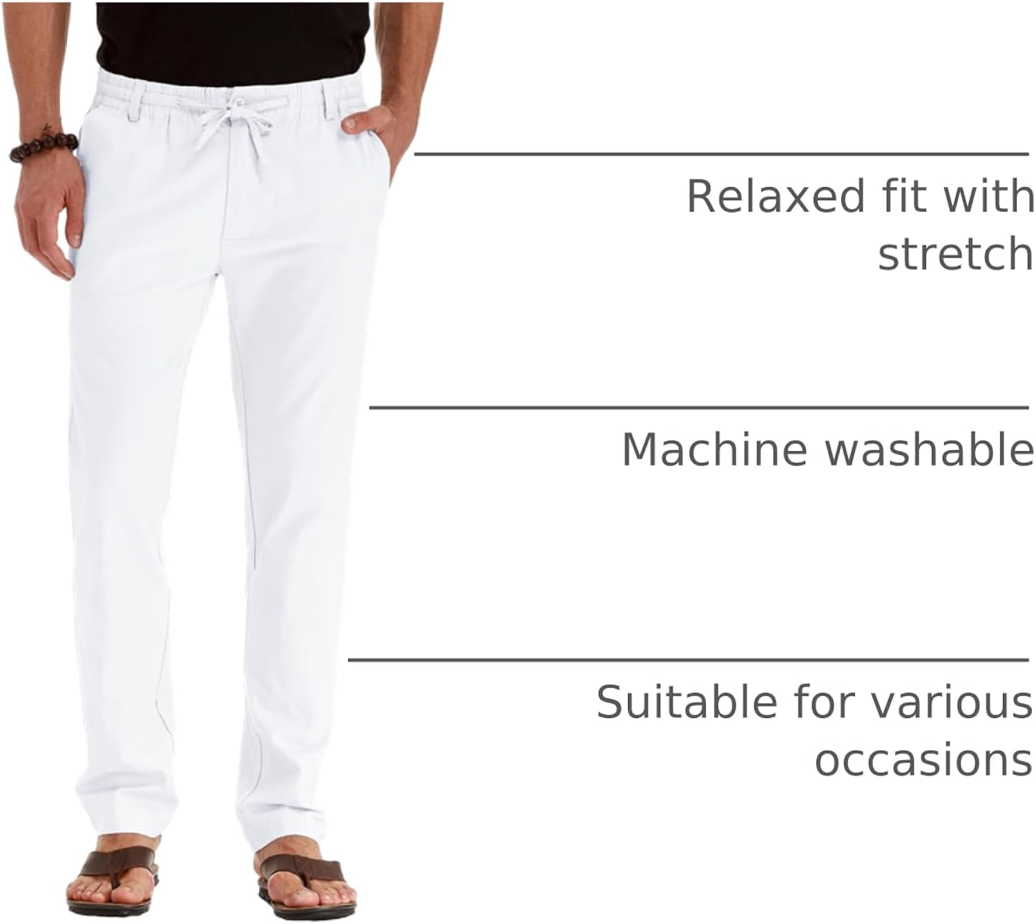 【For All Occasions】The drawstring linen pant is suitable for both clothing and casual, nice for daily wear.dates, beach wedding, party, vacation, night out and lounging etc. Perfect gift for father, friend and boyfriend.
