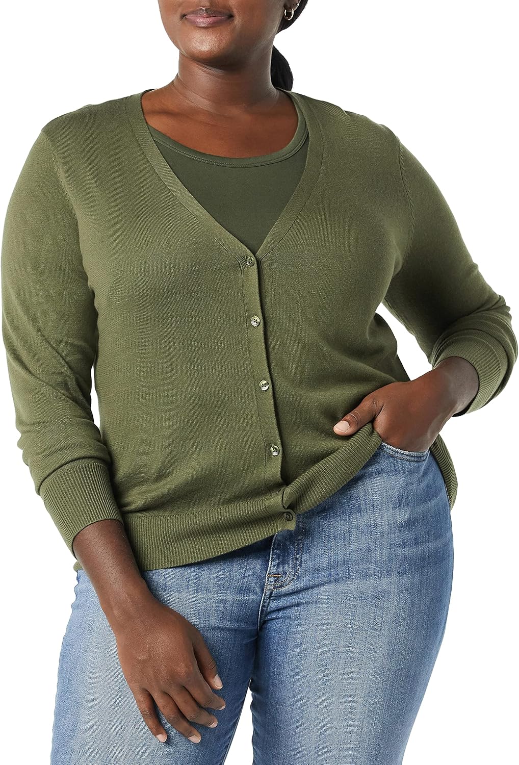 Amazon Essentials Women's Lightweight V-Neck Cardigan Sweater (Available in Plus Size)