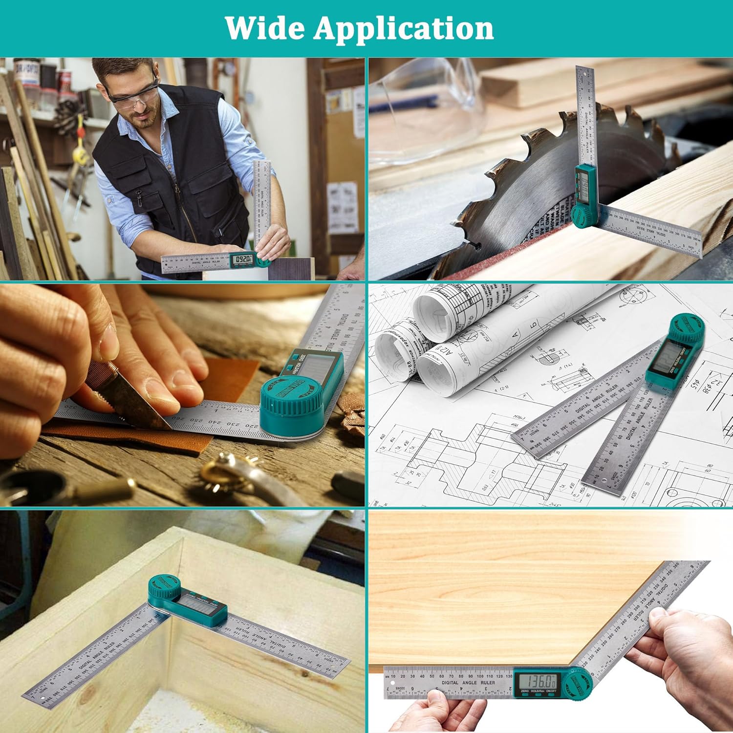【Wide Application】Combining the functions of a digital angle meter and a protractor, it can be used to measure all the angles in your workshop for a wide range of uses, such as checking the angle of a table saw blade or the accuracy of a miter saw, making angle cuts or measurements, trimming or wall angle measurements. A perfect gift for woodworkers, architects, DIY enthusiasts, etc