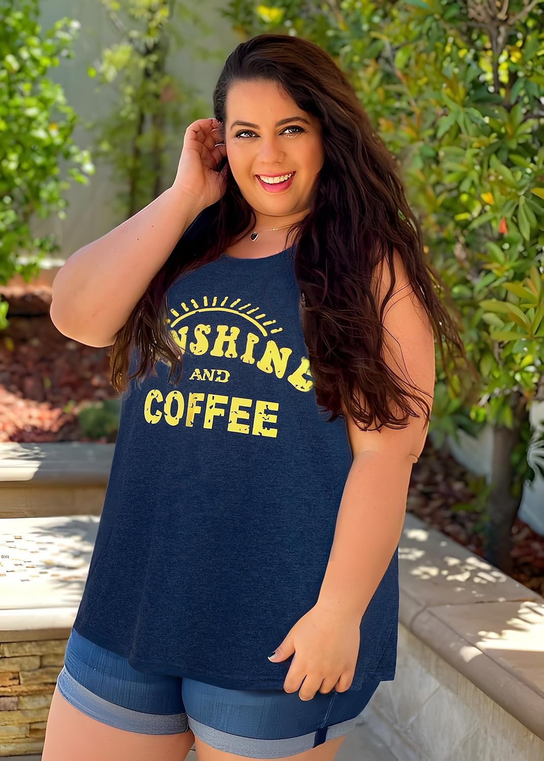 Feature: Summer tops for women, grey tanks for summer, beach tops for women, graphic tees, good vibes shirts, rainbow t-shirts, sleeveless t-shirts,o-neck, bold color of deep grey, you can tie it in a knot or tuck a part of the hem into your pants and you'll instantly become a fashion icon