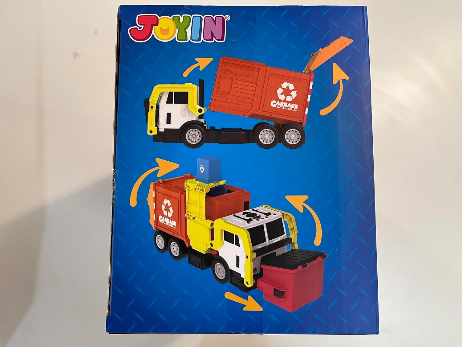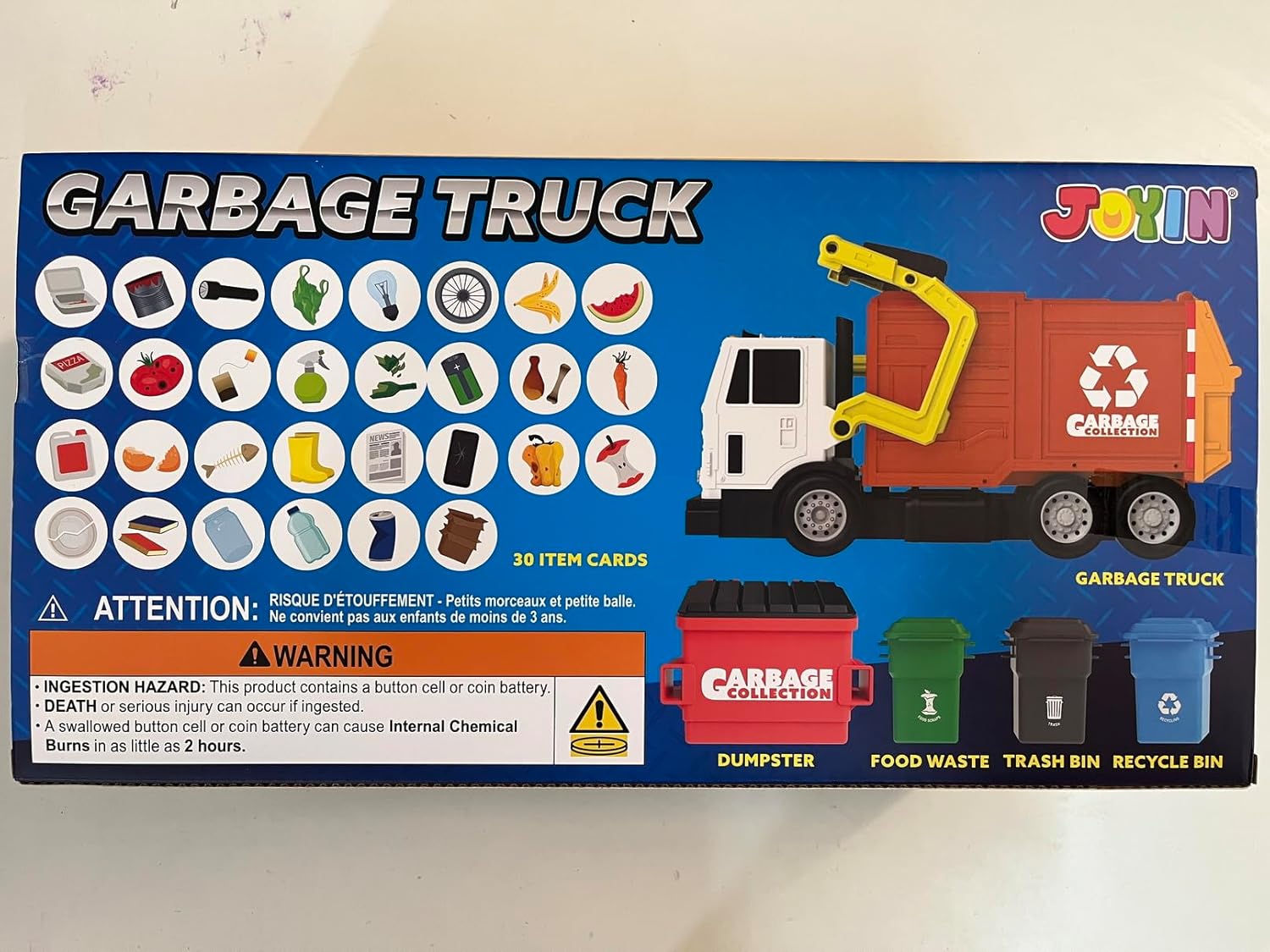 JOYIN Large Friction Powered Garbage Truck Toy Set, Includes Dumpster, Trash Bins, and Learning Cards for Kids