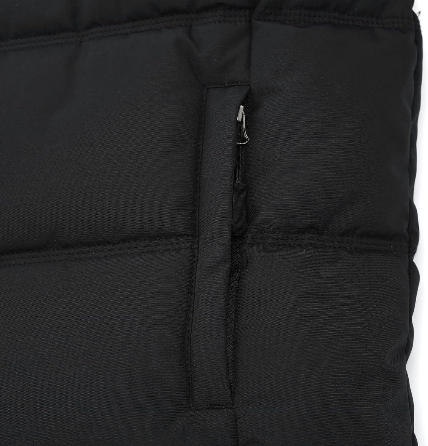 Thicken quilted design and premium lightweight down material keep you warm and cozy. High-class windproof front zipper closure with snap cover placket insulates warmth inside perfectly. Outer material protects you from light rain and snow and keeps you dry