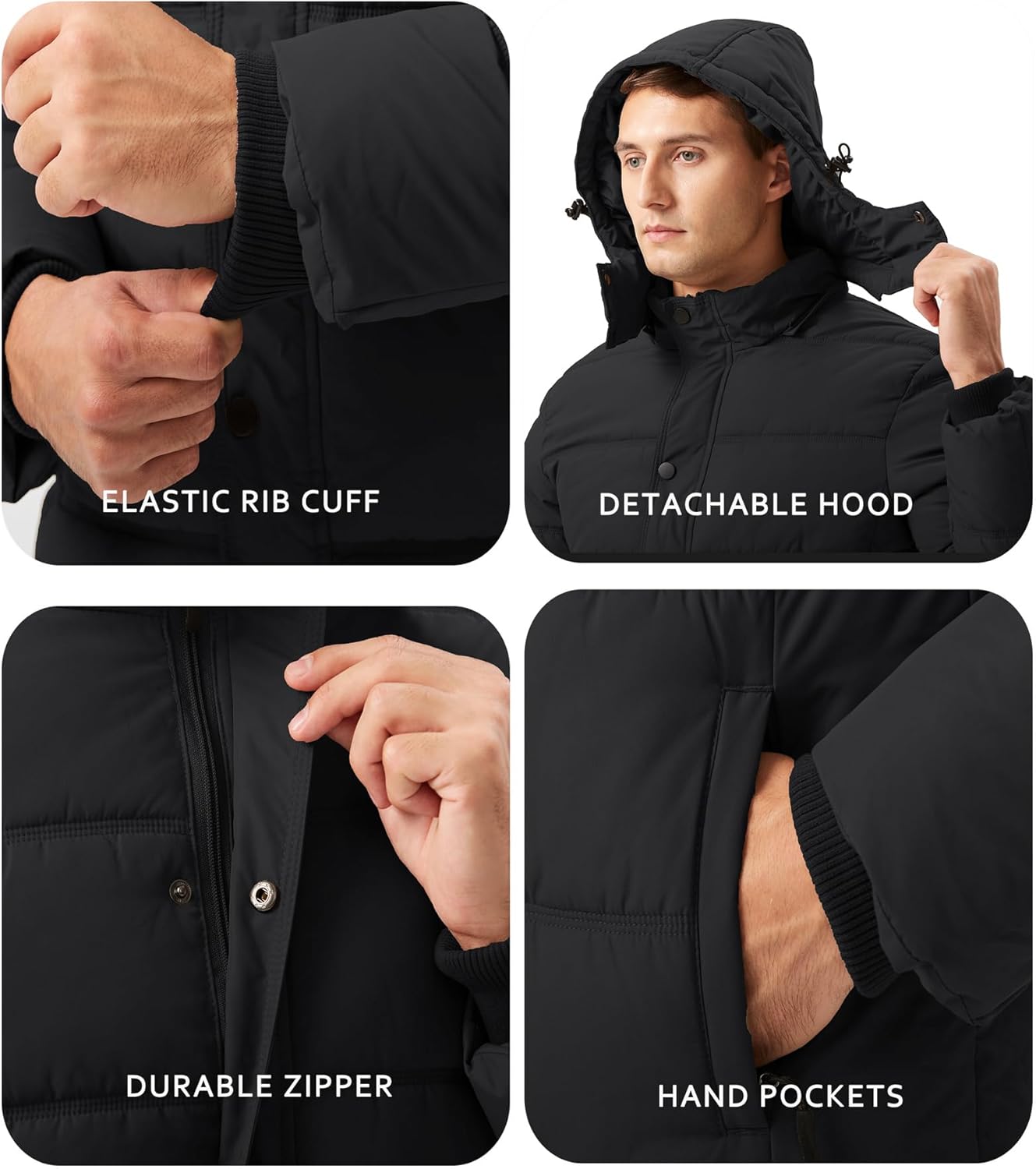 GGleaf Men's Winter Puffer Jacket Quilted Thicken Down Coat Insulated and Water Repellent Jacket with Hood