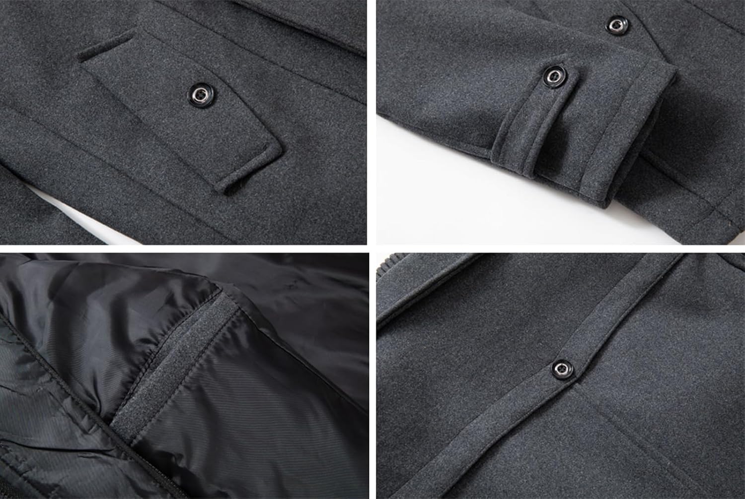 Features: Notched collar and stand collar/ Multi pockets/ Single breasted with detachable zipper/ Long sleeves/ 2 Side pockets, chest pockets, inner pockets/ Patchwork style/ Solid color- Grey, grey, camel